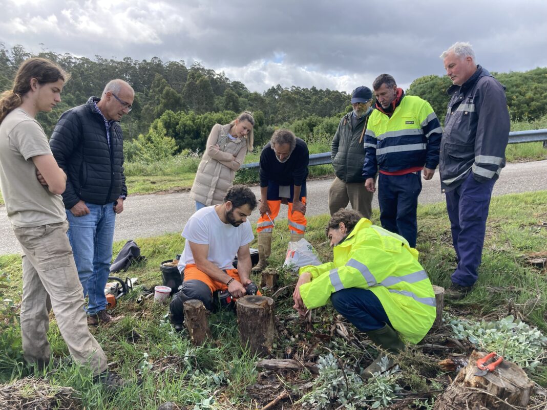 O Concello de Nigrán colabora desde hoxe co proxecto ‘Verdear’ de Alborada ofrecendo formación aos seus usuarios a cargo da Brigada Medioambiental Municipal no parque forestal ‘Os Matos- Río Táboas’. Con este obxectivo, esta mañá unha quincena de usuarios aprendeu a inocular shiitake en tocón de eucalipto para producir esta seta ao tempo que se destrúe por completo esta árbore invasora e, ao mesmo tempo, plantaron especies autóctonas como carballos e castiñeiros. A experiencia irá repetíndose con sucesivos grupos porque o obxectivo de ‘Verdear’ é dotar os usuarios dunha formación suficiente no ámbito da agricultura ecolóxica, para que no futuro poidan conseguir desde un emprego a ben integrarse nalgún dos proxectos de hortos urbanos que, cada vez con maior frecuencia, se desenvolven en toda a comarca.