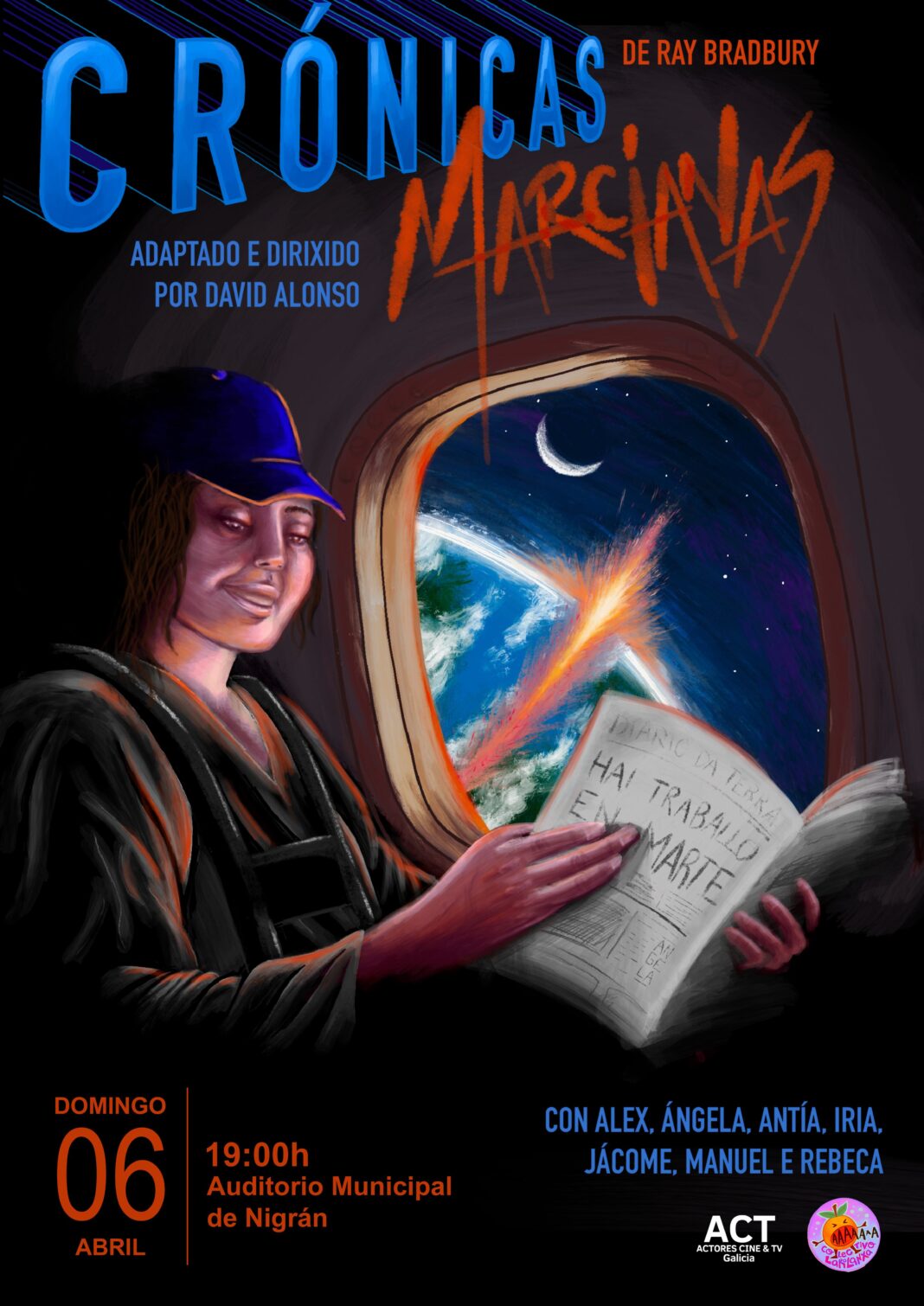 O Concello de Nigrán ofrece este domingo 6 de abril ás 19:00 horas no Auditorio Municipal a obra de teatro baseada no libro de Ray Bradbury ‘Crónicas Marcianas’, adaptada e dirixida por David Alonso e a cargo de sete actores e actrices do grupo Coletivo Laranxa e ACT. A entrada é de balde ata completarse o aforo.