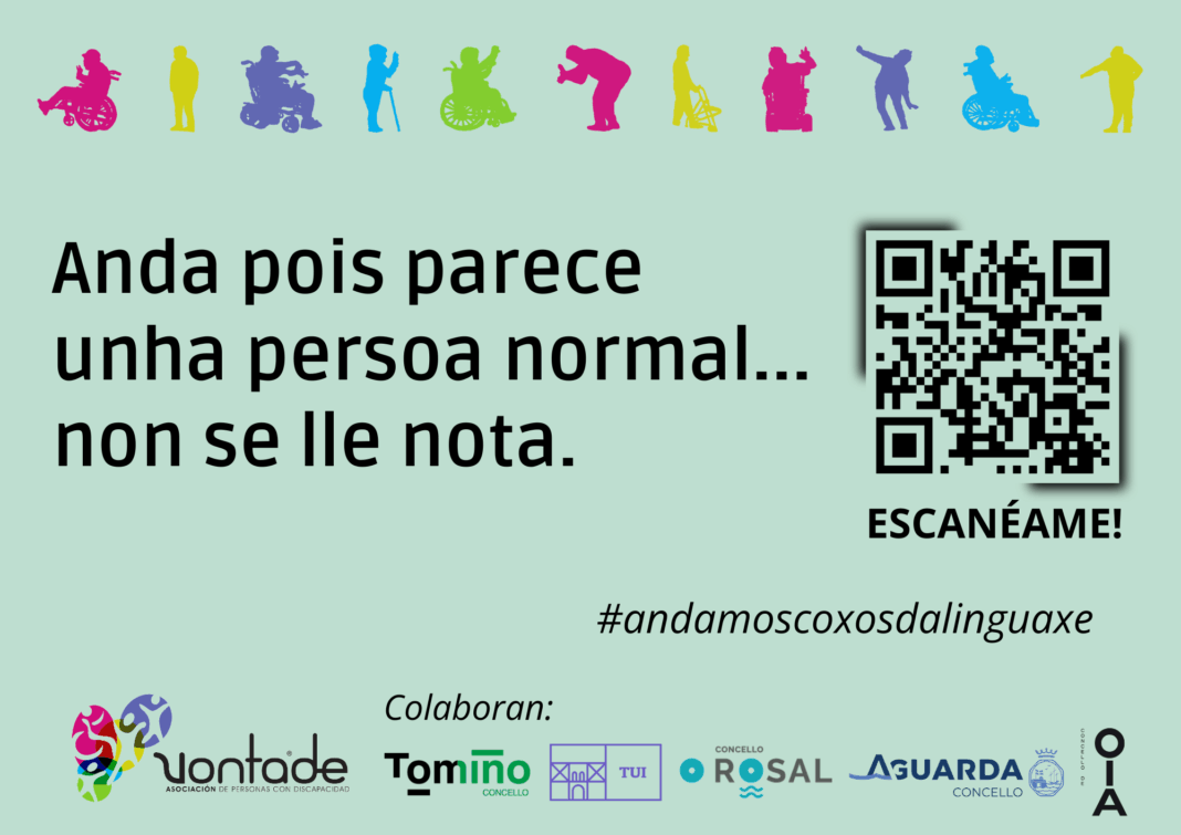 A Asociación de persoas con discapacidade Vontade lanza unha nova edición da súa campaña “Andamos coxos da linguaxe”, que pretende sensibilizar e concienciar sobre a importancia do emprego dunha linguaxe inclusiva para frear os obstáculos que limitan a participación das persoas con discapacidade na comunidade. Co obxectivo de lograr ampliar o máximo posible o alcance desta acción de sensibilización, o Concello de Oia, xunto co resto de municipios do Baixo Miño, colaborarán na difusión das diferentes accións que se irán levando a cabo nos vindeiros días.