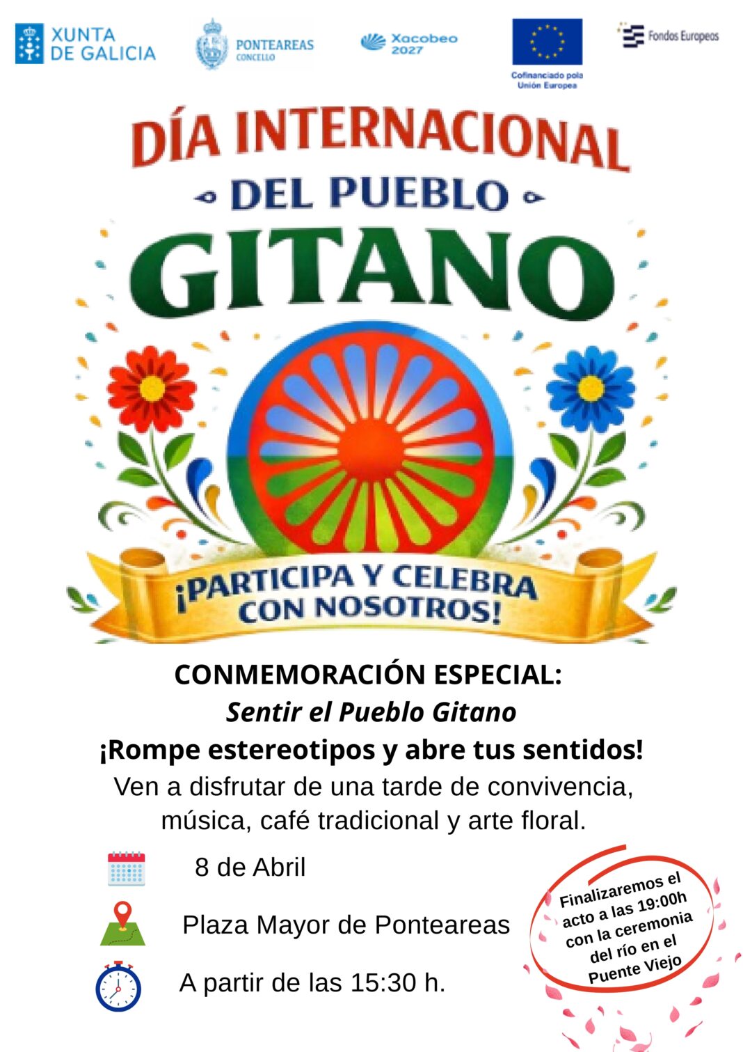 O Concello de Ponteareas celebrará mañá, 8 de abril de 2026, o Día Internacional do Pobo Xitano cunha xornada aberta á cidadanía deseñada polo Programa de Emerxencia e Inclusión Social do Concello de Ponteareas baixo o título “Sentir o Pobo Xitano: unha viaxe a través dos sentidos”.