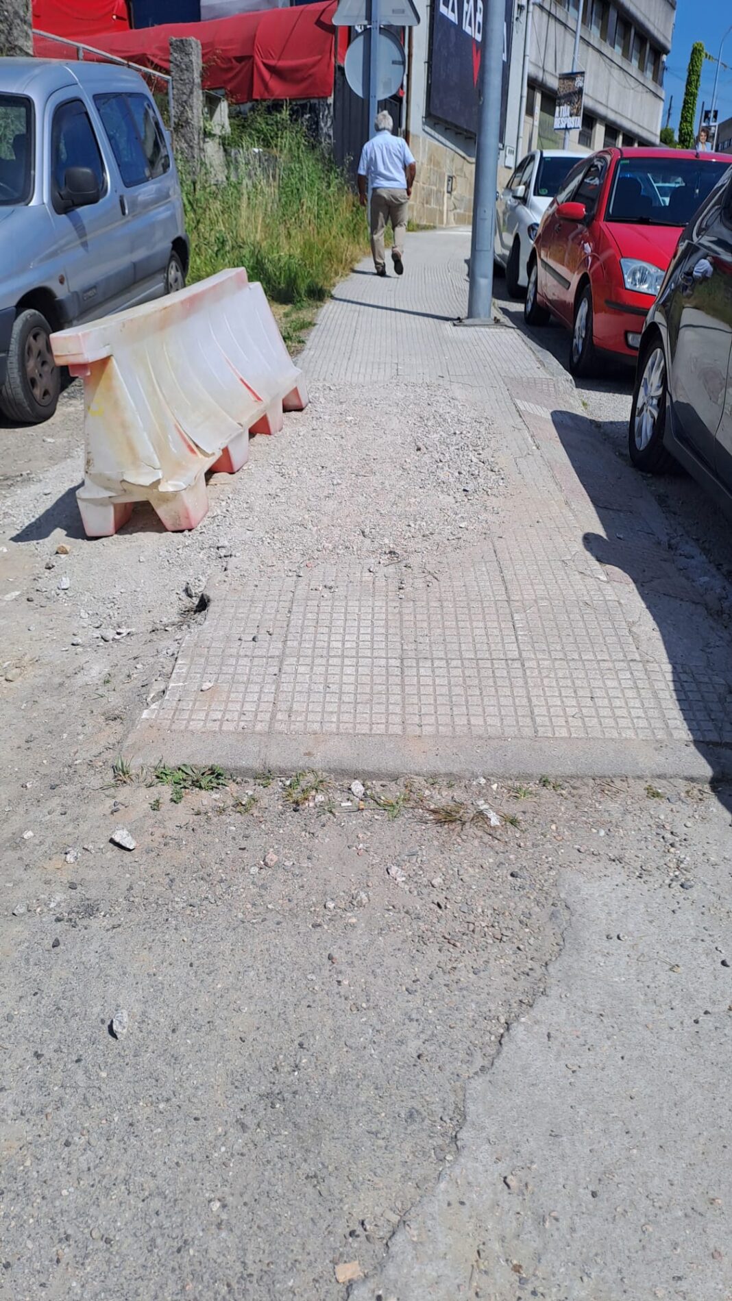 – O mal estado das beirarrúas na avda Mendiño obrigou ao Concello a renovar no último ano máis de 500 lousas do pavimento que estaban rotas, para evitar riscos para os peóns, malia non ser unha competencia municipal.