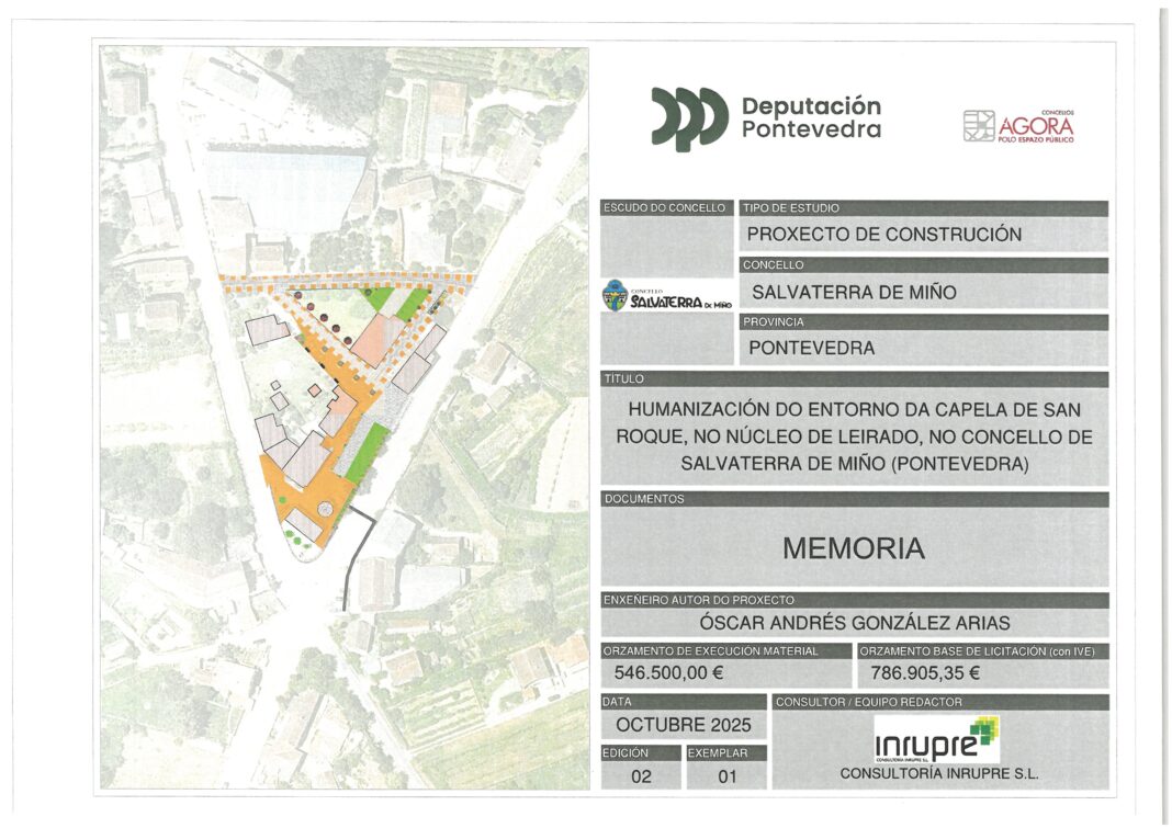 Neste senso, o goberno local aprobou a solicitude de presentación do proxecto de humanización do entorno da Capela de San Roque en Leirado, cun orzamento de licitación de preto de 787.000 euros. Unha actuación que busca a humanización de espazos onde o peón gañe protagonismo. Na actualidade este entorno atópase en pavimento de firme bituminoso e non posúe zonas peonís, coa execución deste proxecto pretendese crear unha plataforma única, co fin de darlle protagonismo ó peón.