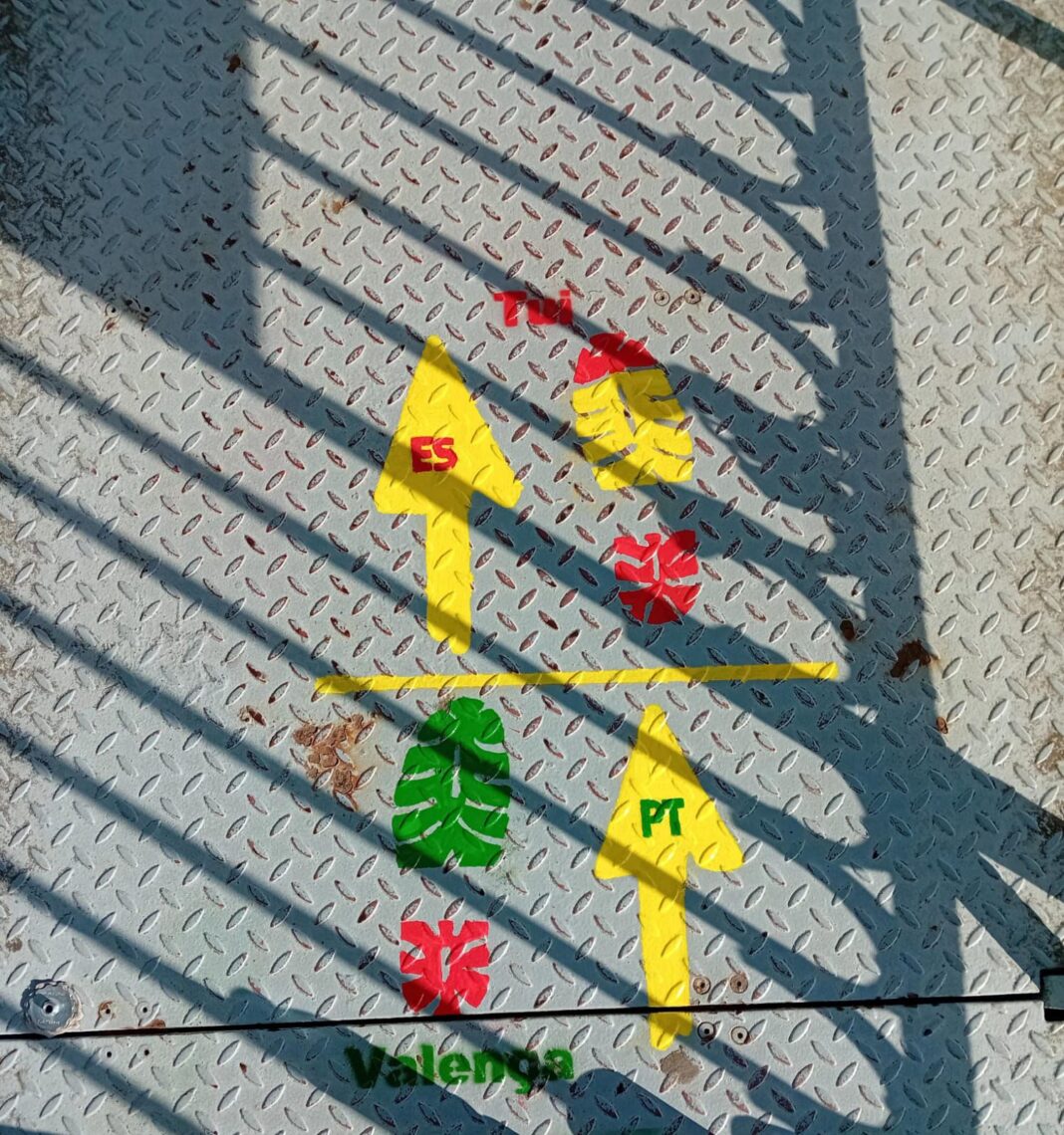 O Concello de Tui ten recuperado estes días as pegadas dos peregrinos que sinalan o tránsito entre España e Portugal na Ponte Internacional. Unha iniciativa da Cámara Municipal de Valença de hai xa varios anos e que polo desgaste do paso de peóns e peregrinos por este lugar tiña perdido practicamente a súa visibilidade.