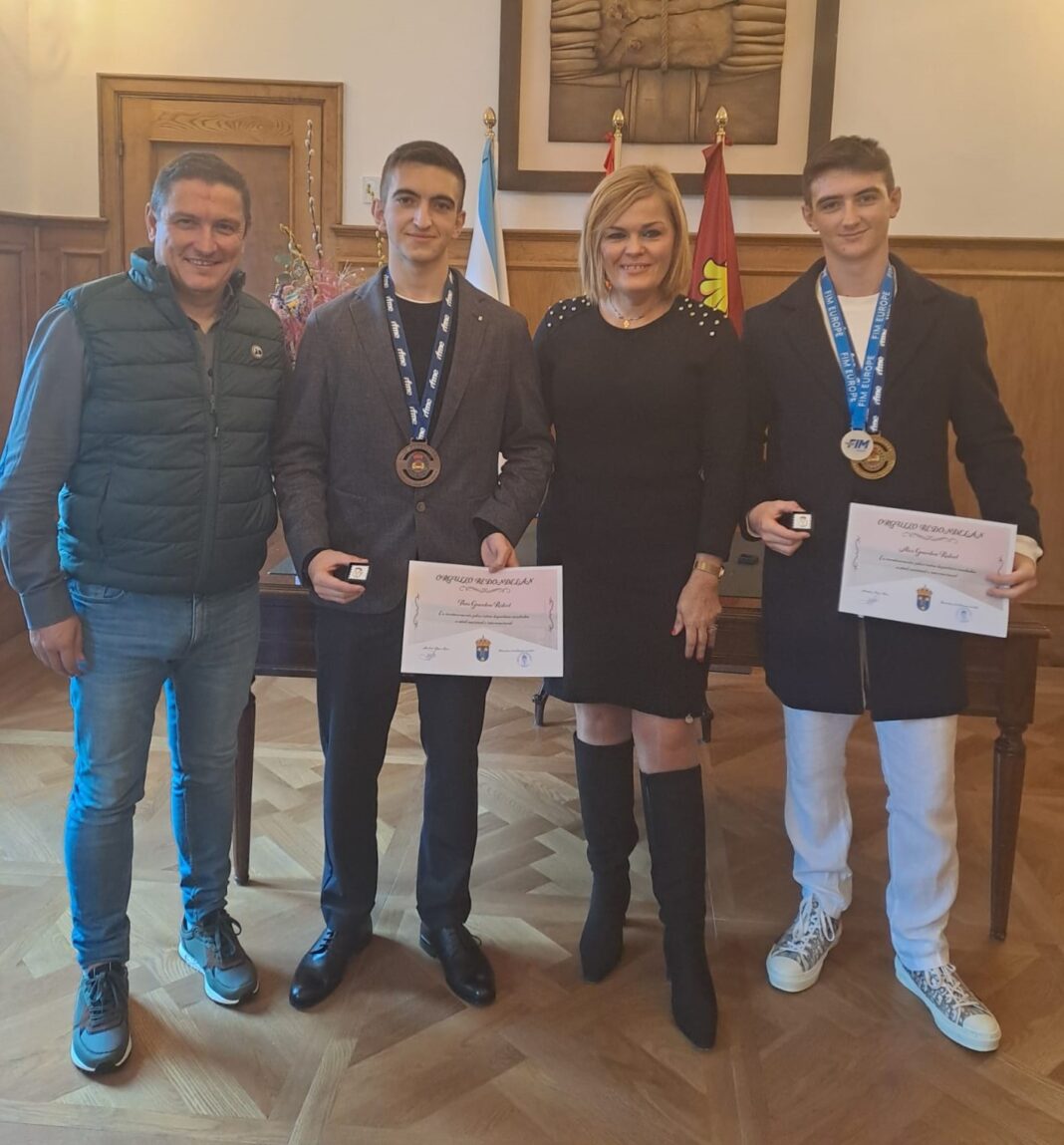 O Concello de Redondela acolleu este mediodía a recepción aos pilotos Alex e Theo Gourdon Rafael do Team GR Husqvarna, equipo creado polos propios deportistas redondeláns. Os dous irmáns, de 17 e 19 anos respectivamente, acadaron esta temporada grandes éxitos a nivel nacional e internacional. Hoxe recibiron o diploma “Orgullo redondelán” e a insignia do Concello de mans da alcaldesa, Digna Rivas, e o concelleiro de Deportes, Iván Valles, como “recoñecemento e homenaxe” polo seu traballo e méritos deportivos. Para a alcaldesa é “un luxo” que este municipio conte con deportistas “ao máis alto nivel do motociclismo nacional e internacional nunha disciplina tan esixente” e auguroulles moitos éxitos no futuro tanto a Alex como a Théo.