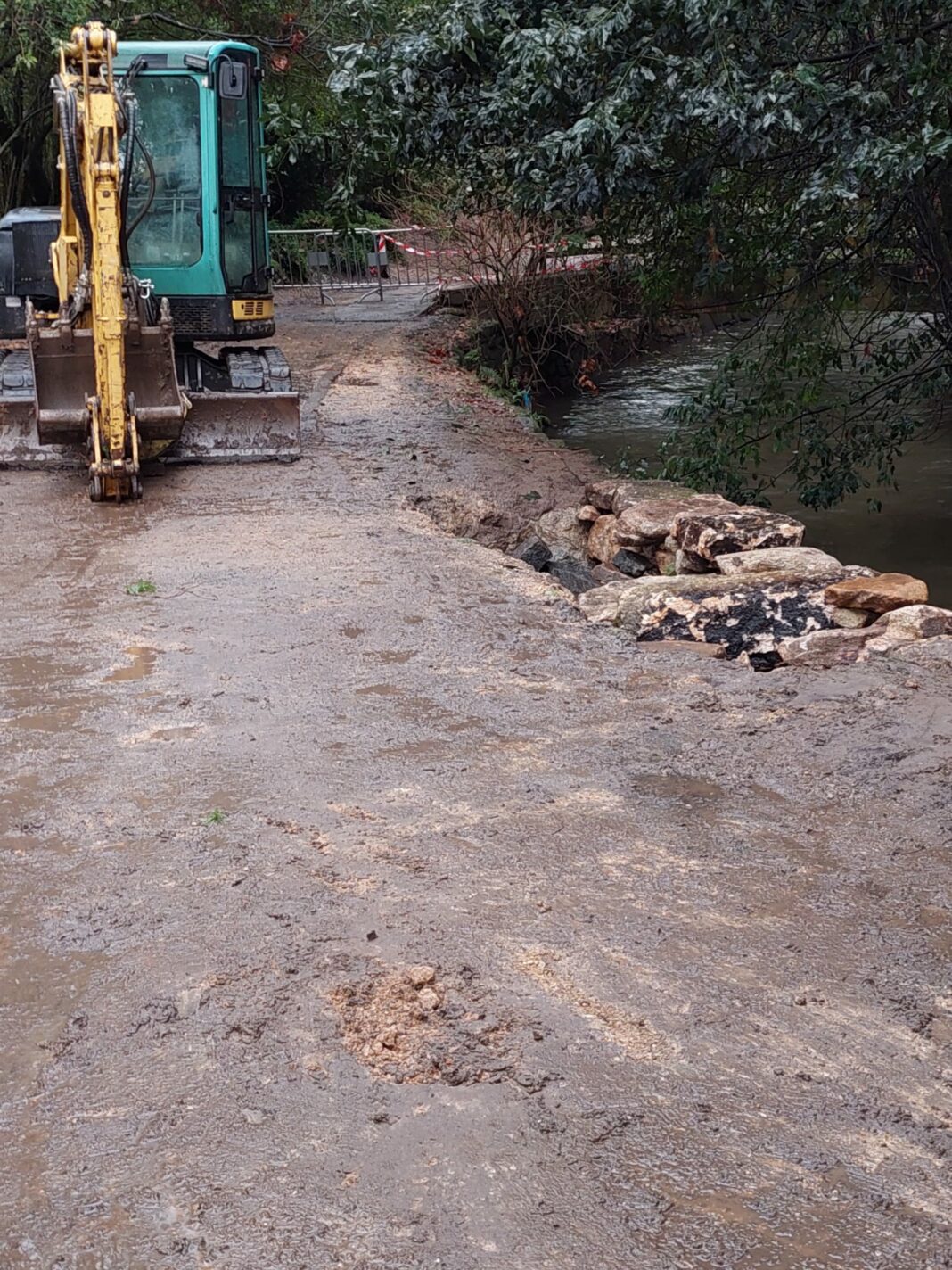 Os traballos consisten na retirada das pedras que estaban no leito, en consolidar o terreo e colocar novas pedras para continuar o muro de contención.