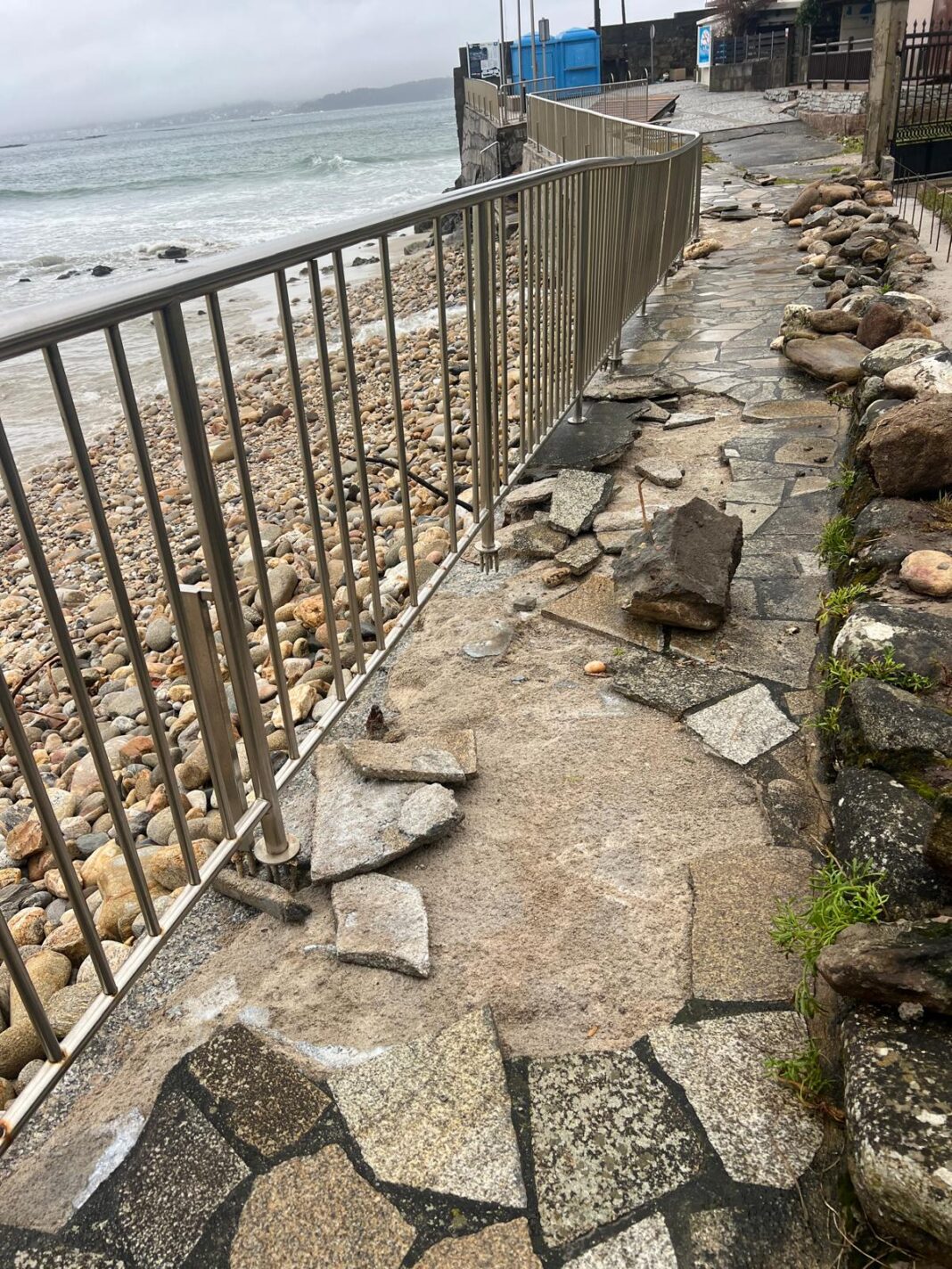 Agora, o Concello segue facendo repaso de todos os desperfectos e activa as necesidades para os seus arranxos. Na Ribeira, caeron trozos de muro e os primeiros chanzos da escaleira nova. A vella quedou totalmente rota. Ademais, a pasarela de madeira tamén está perigosa.