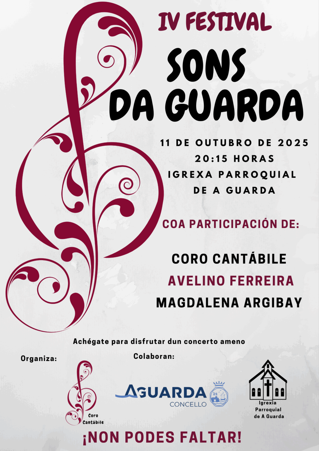 Este sábado 11 de outubro ás 20:15 horas dará comezo na igrexa parroquial da Guarda o IV Festival Sons da Guarda.