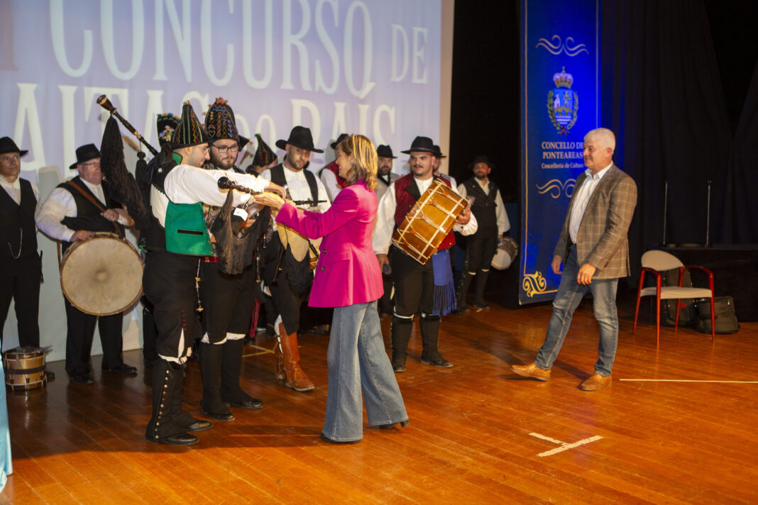 O grupo mosense Redemuíños recolleu da man da alcaldesa Nava Castro e do tenente de alcalde e concelleiro de Cultura, Juan Carlos González, a gaita realizada polo artesán ponteareán José Gil e o premio de 2.000€ ao resultar gañadores do LVI Concurso de Gaitas do País de Ponteareas.