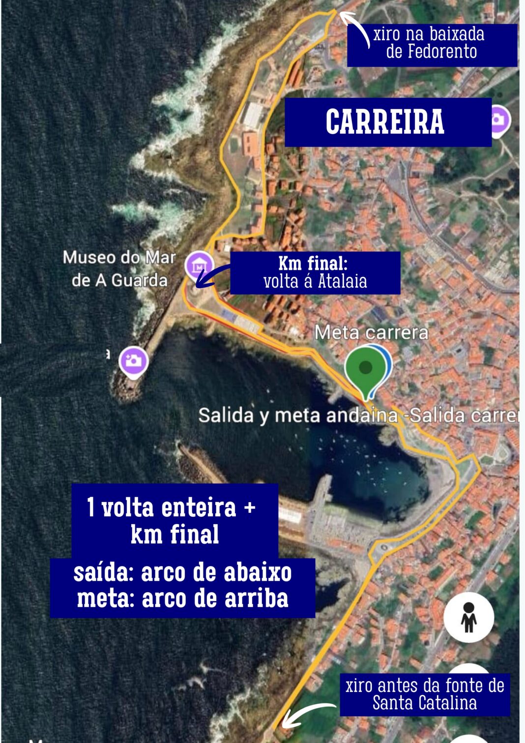 O percorrido da andaina será de 4km aproximadamente dando unha volta ao circuíto e rematando no mesmo punto de saída. Pola súa banda, a carreira será de 5km aproximadamente, continuando o percorrido dando volta na Atalaia antes de chegar á meta final.