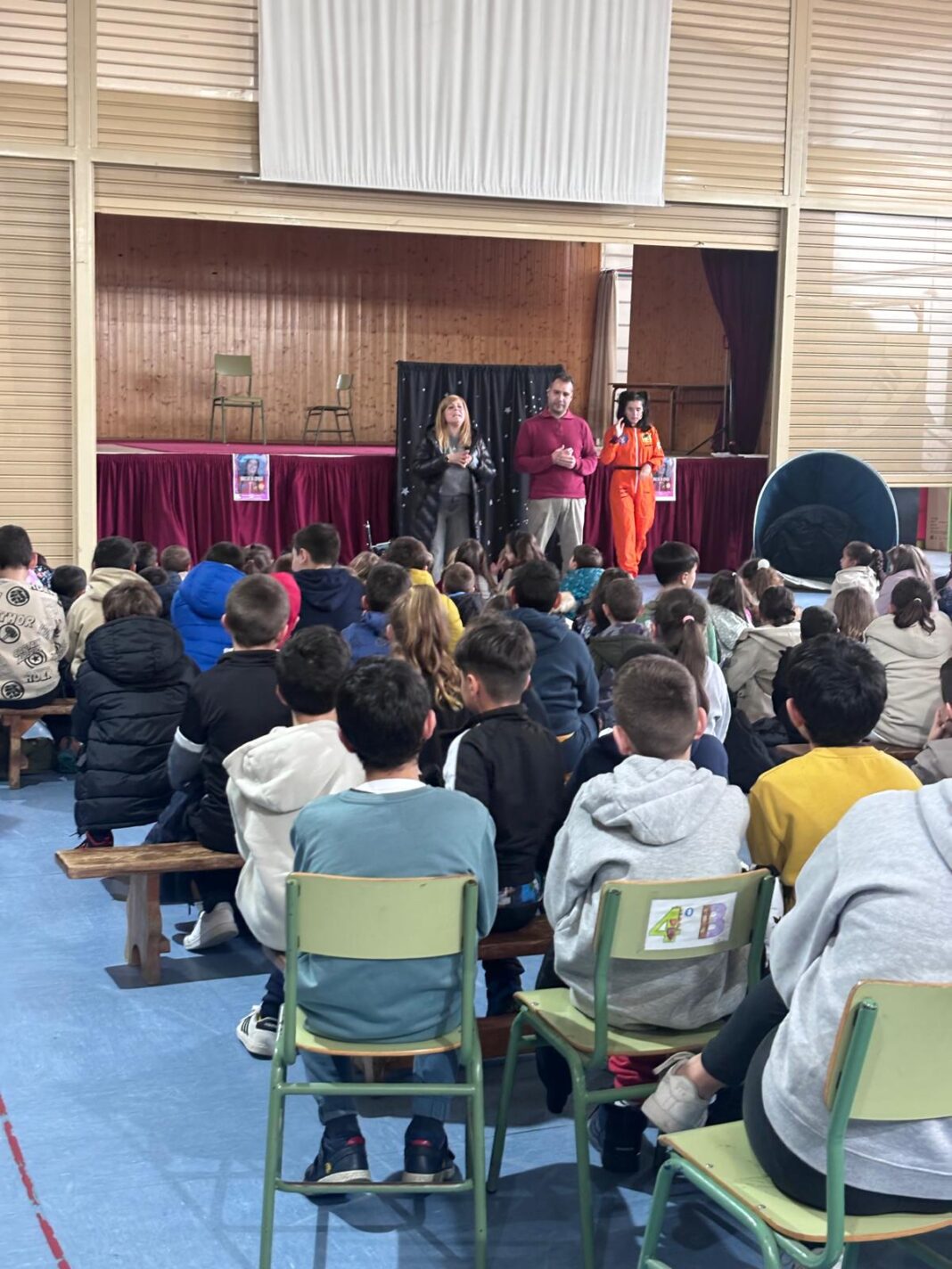 O alcalde, Jacobo Pérez, asistiu na mañá deste xoves ao espectáculo infantil ‘Directas ao espazo’, unha representación teatral, a cargo da compañía Trémola Teatro, que se enmarca dentro das accións deseñadas polo Concello de Caldas de Reis para conmemorar o Día Internacional da Muller (8 de marzo). Un dos eidos nos que a programación elaborada pola Concellería de Igualdade pon o foco é no educativo, con varias iniciativas a desenvolver nos colexios locais. No caso desta proposta, trátase dunha historia adaptada sobre a vida de dúas astronautas, Valentina Tereshkova e Sara Garía Alonso, que romperon teitos e se converteron en referentes, ao seren, respectivamente, a primeira muller que viaxou ao espazo e a primeira española astronauta. As actividades escolares non rematan aquí, xa que os días 12 e 21 de de marzo os centros educativos acollerán o Xogo da Corresponsabilidade. Dirixida a nenos e nenas de 6º curso, as crianzas tomarán conciencia, participando nesta iniciativa, sobre a necesidade e a importancia de establecer un reparto de tarefas e obrigas tanto na propia escola como nos seus fogares. Mediante o uso de material audiovisual e un gran taboleiro e pezas de grandes dimensións, xogarán unha partida moi especial, que supón un reto cooperativo que ensina e inspira. Esta actividade destaca por ser moi dinámica e por combinar o apartado lúdico e a aprendizaxe de xeito participativo, baixo o lema ‘Xogamos xuntos e xuntas por construír un futuro máis igualitario’.