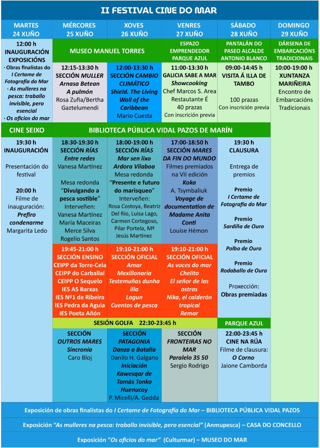Tamén hai que destacar as mesas redondas, unha delas protagonizada por coñecidos youtubers que traballan no mar; e outra por mariscadoras da Confraría de Vilaboa. E por último, hai que mencionar as 3 exposicións que se poderán contemplar: “As mulleres na pesca: traballo invisible, pero esencial”, “Os oficios do mar“ e as obras finalistas do I Certame de Fotografía de Mar.