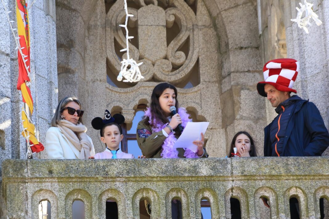 Ás 13:00 h celebrouse o acto central da mañá: o pregón do Entroido, a cargo de Carla Marques Vaquero, alumna de 4º da ESO do Colexio Santo Tomás e gañadora do concurso de carteis na categoría de Secundaria. O pregón desenvolveuse no balcón da Casa Consistorial, onde Carla estivo acompañada polos outros escolares premiados, resaltando o talento e a creatividade da mocidade porriñesa.