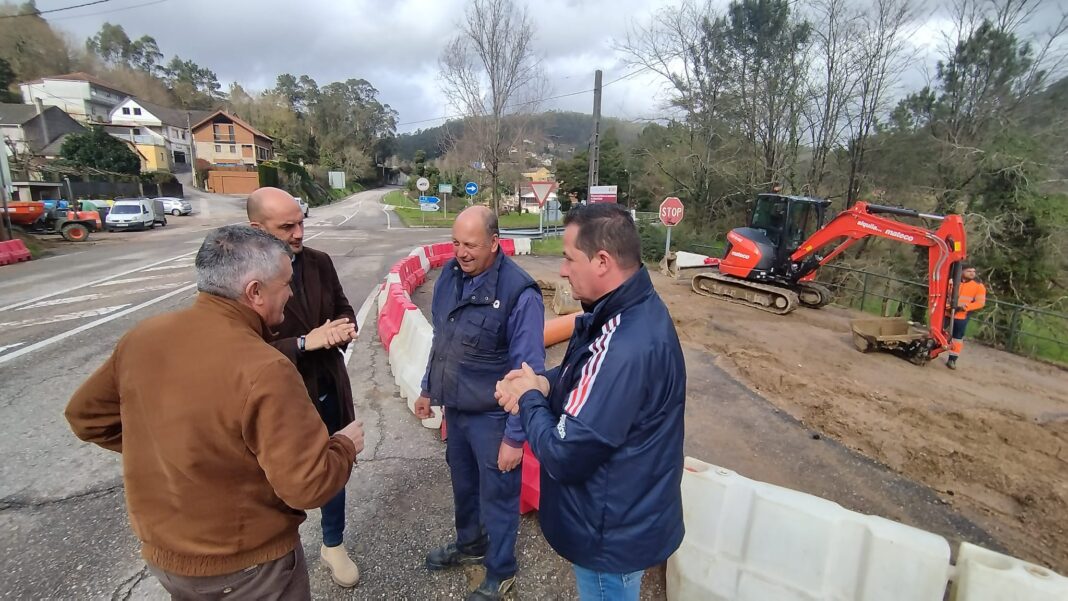 O alcalde, Alejandro Lorenzo, o concelleiro de Vías e Obras, Ramón Porto, e o concelleiro de Parroquias, Marcos Martínez, supervisaron hoxe os traballos que incluirán tamén a mellora da capa de rodadura na zona a intervir.