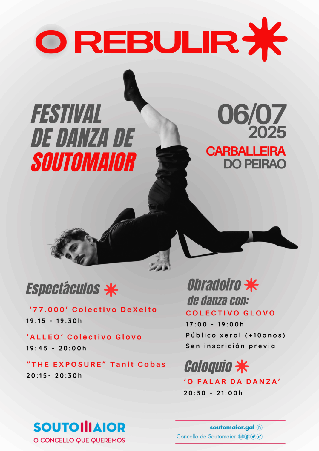 A danza contemporánea xorde como unha reacción ás formas clásicas e probablemente como unha necesidade de expresarse máis libremente co corpo. É unha clase de danza na que se busca expresar unha idea, un sentimento, unha emoción, pero mesturando movementos corporais propios do século XX e XXI. Este festival de danza contemporánea , O Rebulir, naceu no 2024, como unha nova proposta de dinamización cultural e social achegando esta disciplinas a Soutomaior para crear novos públicos e novas inquedanzas artísticas.