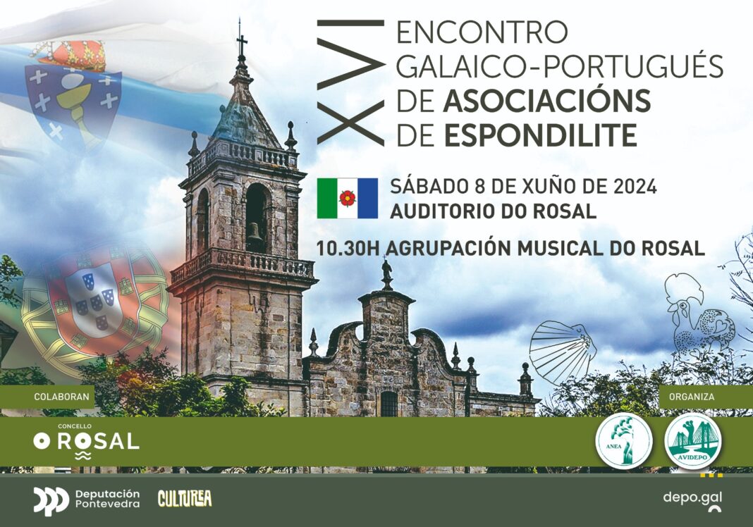 O auditorio municipal do Rosal será o escenario do XVI Encontro Galaico-Portugués de Asociacións de Espondilite, un encontro organizado pola Asociación Viguesa de Espondilíticos de Pontevedra (AVIDEPO) en colaboración co Concello e que contará coa asistencia dunha ampla representación da Associação Nacional da Espondilite Anquilosante (ANEA) de Portugal.
