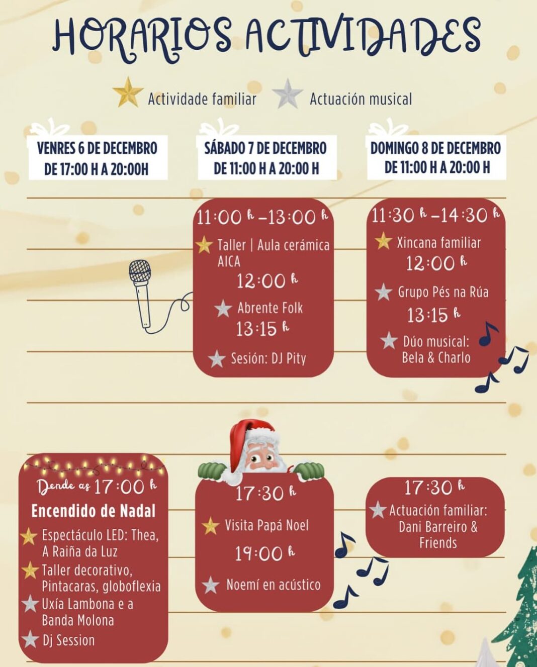 Pola súa parte, os máis pequenos e familias poderán vir a divertirse co taller de cerámica, a esperada visita de Papá Noel e unha emocionante Xincana Familiar.