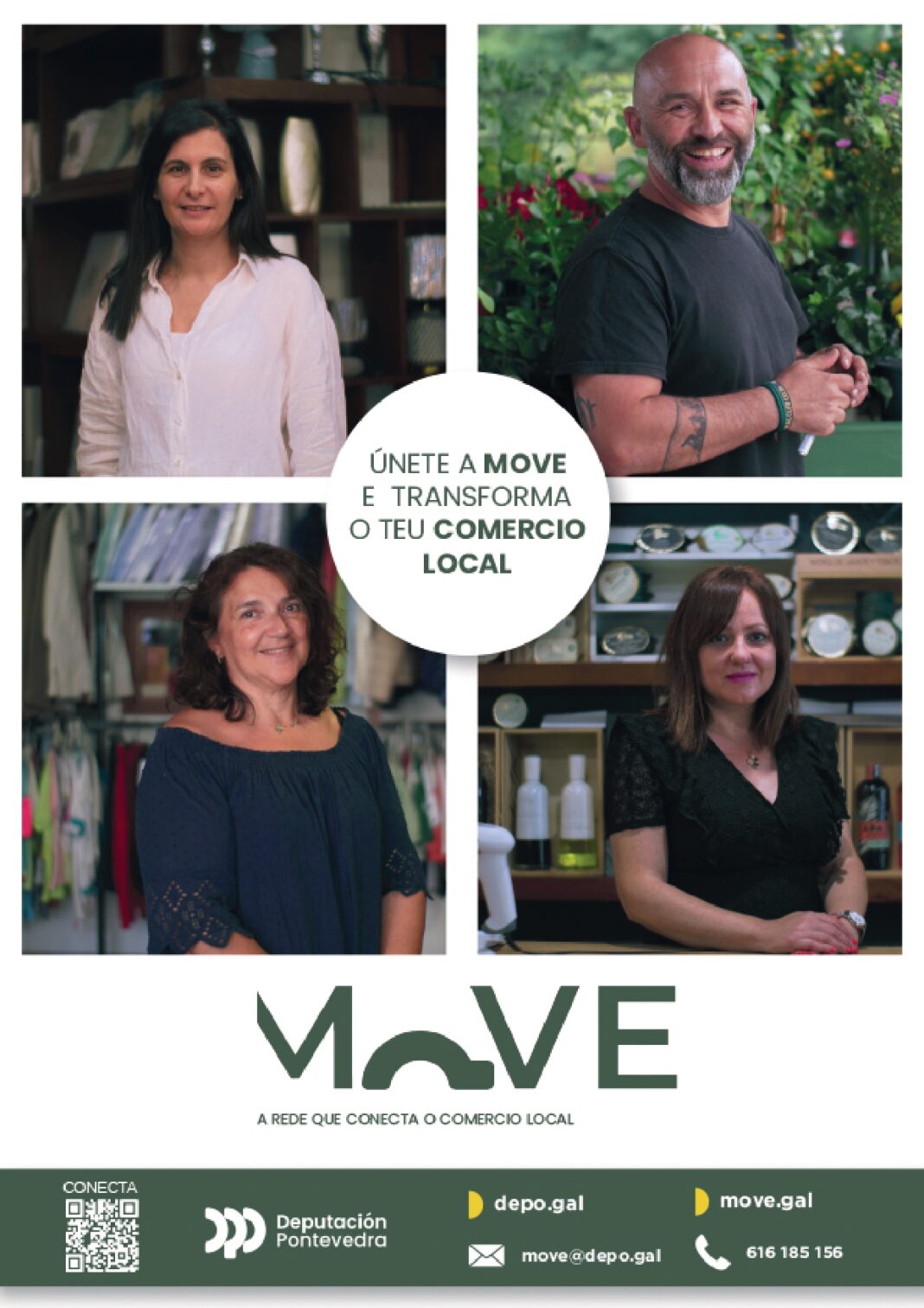 Move é unha iniciativa da Deputación de Pontevedra e dos concellos adheridos que ten o obxectivo de crear unha rede de comercio local que permita estreitar vínculos entre persoas comerciantes e hostaleiras da provincia e produtores e provedores.