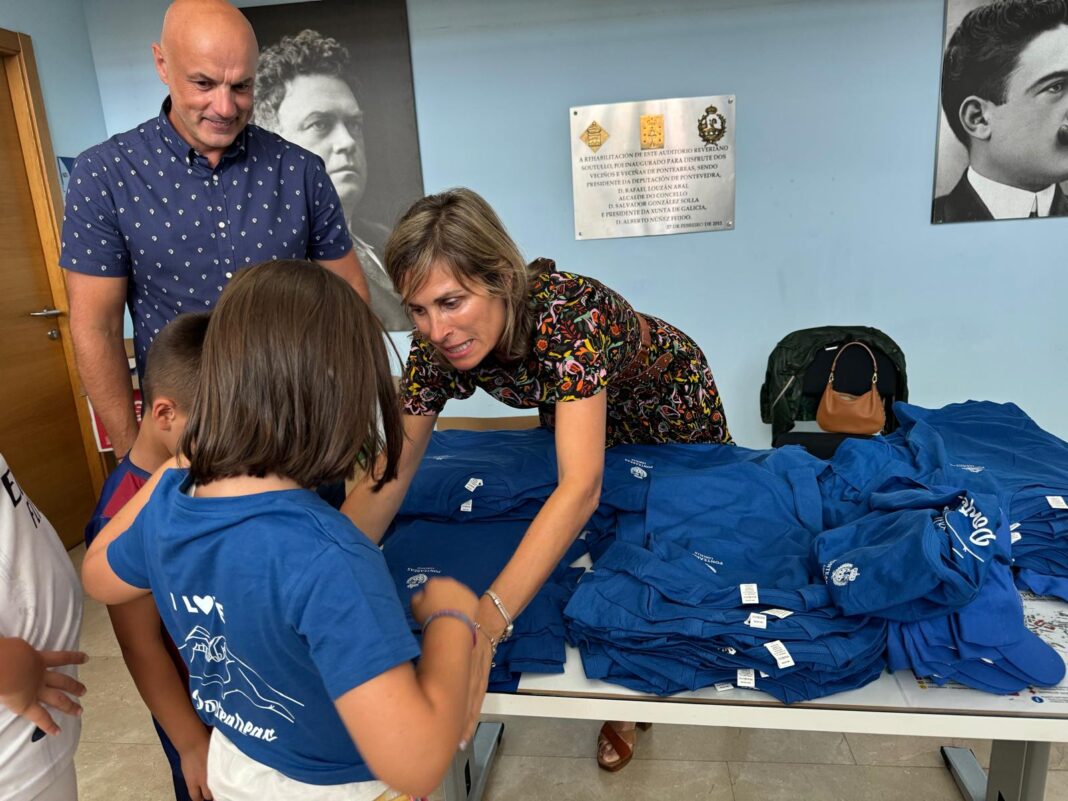 • A alcaldesa e o concelleiro de Ensino entregáronlle camisetas e gorras de Ponteareas