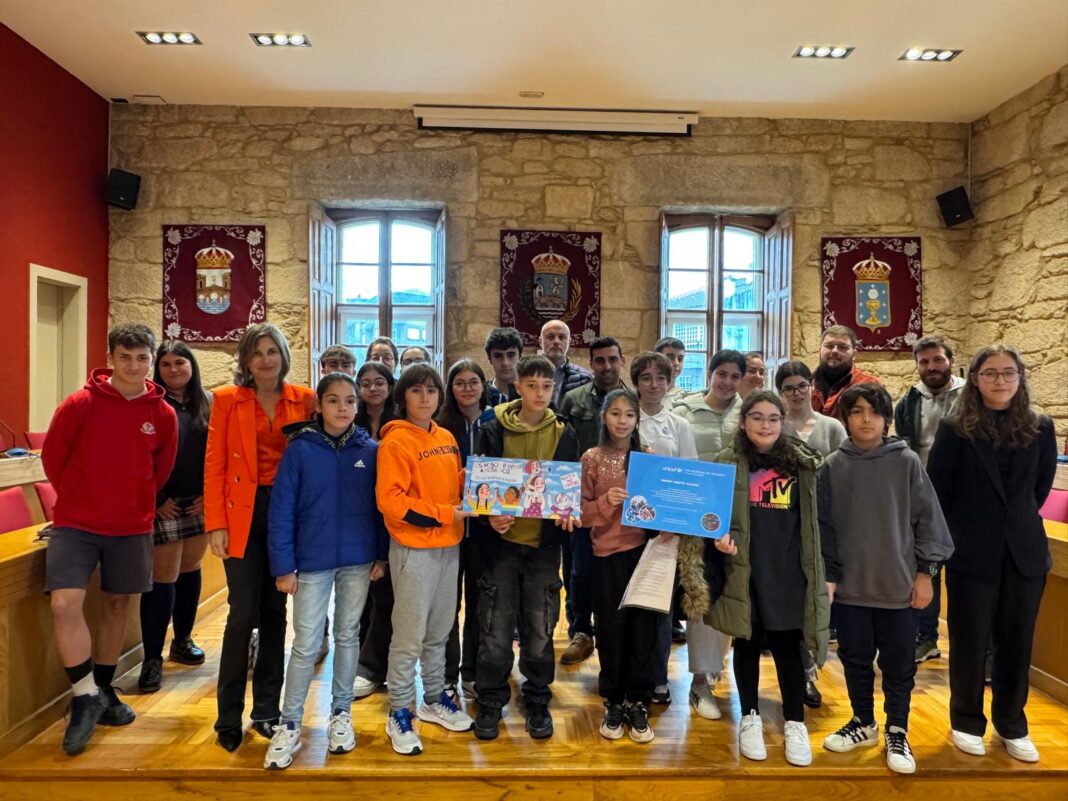 A voz da infancia e da xuventude encheu o salón de plenos da Casa do Concello coas intervencións de Cecilia e Lucas do CEIP Feliciano Barrera; Mía e Brian CEIP Mestre Ramiro Sabell Mosquera; Casandra e Juan do CEIP Santiago Apostol; Paula e Lea do CPR Plurilingüe La Inmaculada; Gabriel e Erea do CPR Plurilingüe Santiago de Oliveira; Hugo e Evelyn do IES Barral; Bibi e Mateo do IES Pedra da Auga e Laura e Noela do IES Val do Tea.