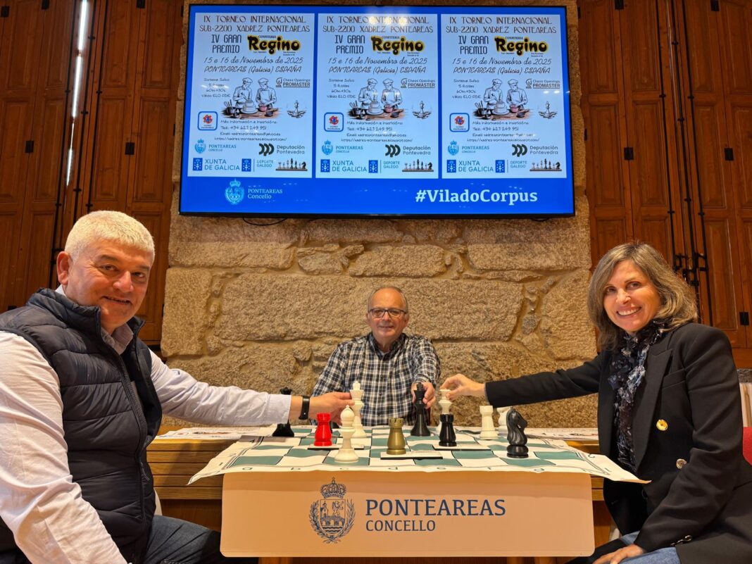 O salón de plenos do Concello de Ponteareas acolleu hoxe a presentación do IX Torneo Internacional Sub-2200 de Xadrez – IV Gran Premio Confitería Regino, unha cita xa consolidada no calendario deportivo galego e que reunirá o mellor do xadrez afeccionado internacional os días 15 e 16 de novembro de 2025 no CEIP Plurilingüe As Veigas.