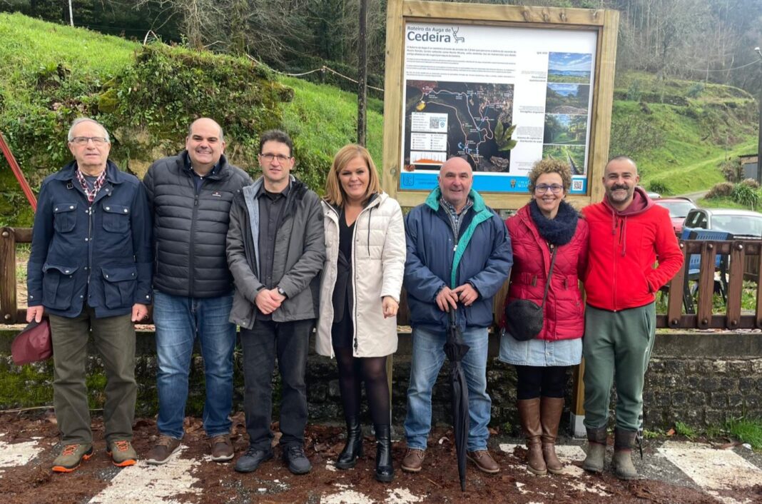 Redondela, 13 de febreiro de 2026 – O Concello de Redondela segue a apostar pola posta en valor do patrimonio natural e cultural do municipio. Esta mañá presentouse oficialmente a sinalización do Roteiro da Auga en Cedeira, un proxecto que busca dar a coñecer a riqueza paisaxística, histórica e ecolóxica da parroquia. Ao acto de presentación asistiu a alcaldesa, Digna Rivas, co concelleiro de Medio Ambiente e Ensino, Alberto Álvarez, os representantes da Comunidade de Augas coa presidenta Guadalupe Maestú, Leoncio Vidal, José Ramón Alonso e Nicanor Nieto, así como o director do CEIP Cedeira, José Luis Ojea. O colexio, nas inmediacións deste sendeiro, poderá beneficiarse desta nova ruta sinalizada que ten un marcado carácter comunitario, divulgativo e educativo. Rivas destacou que, con esta sinalización, “poñemos en valor a riqueza natural e arqueolóxica de Cedeira, e tamén o traballo e compromiso dos homes e mulleres desta parroquia coa súa terra”. A historia da traída de auga en Cedeira é protagonista do sendeiro “ un servizo básico que se conseguiu grazas á organización veciñal”.