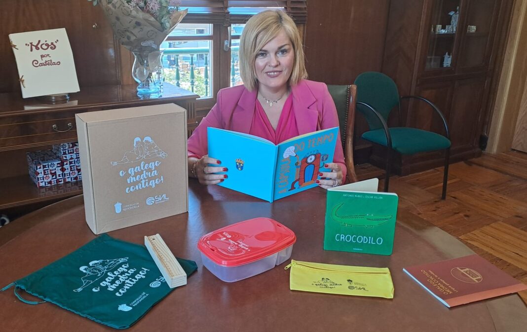 A Concellería de Normalización Lingüística está a facer entrega ás familias dos novos alumnos e alumnas de Educación Infantil das caixas de agasallo “Medrando co galego” un proxecto pioneiro que se puxo e marcha hai dous anos para promover o uso do galego na infancia. Esta iniciativa é unha idea orixinal do departamento que dirixe Digna Rivas e que achega aos nenos e nenas libros e contos que fomentan o uso do galego, unha bolsiña da merenda, lapis de cores ou unha friameira. “Trátase de ofrecer ás familias obxectos útiles, que os nenos e nenas poidan usar na súa vida cotiá con lemas en lingua galega”, explica a alcaldesa. Entre o material desta caixa de agasallo está “A Cápsula do tempo”, un caderno que acompañará ao alumnado ao longo de todo o ciclo de ensino Infantil e Primaria. A rapazada irá completando cada curso este caderno, que quedará gardado na escola, e cando rematen 6º de primaria, no acto de despedida entregaráselles a cada un o seu libro “que será un recordo vivo do paso pola escola e tamén da súa relación coa lingua galega” sinala Rivas.
