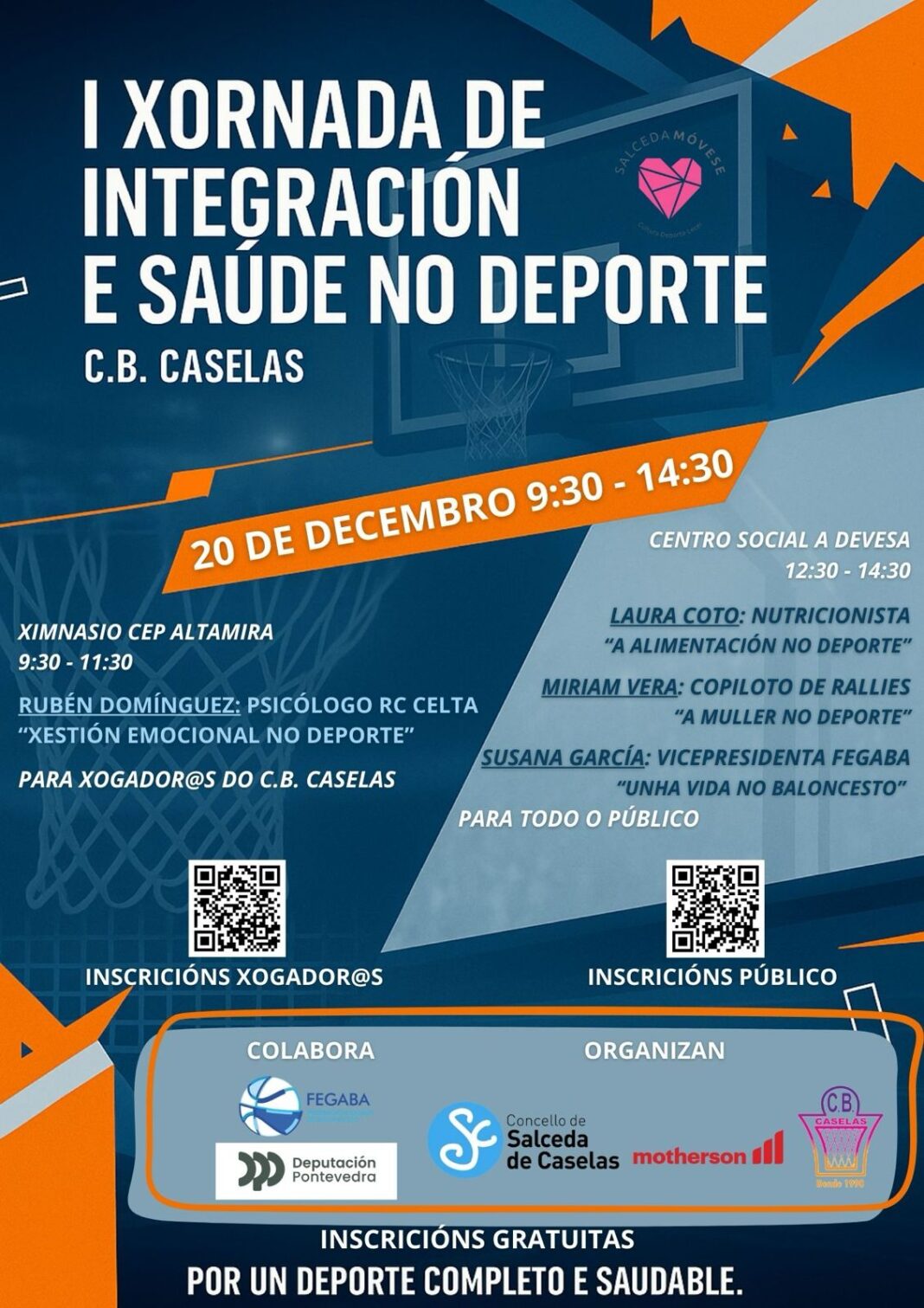 O Club Baloncesto Caselas, en colaboración co Concello de Salceda de Caselas, a Federación Galega de Baloncesto (FEGABA), o seu patrocinador Motherson e a Deputación de Pontevedra, organiza a I Xornada de Integración e Saúde no Deporte, un ciclo de charlas de carácter transversal dirixido a xogadoras e xogadores, adestradoras e adestradores, familias do club e tamén aberto ao público xeral.
