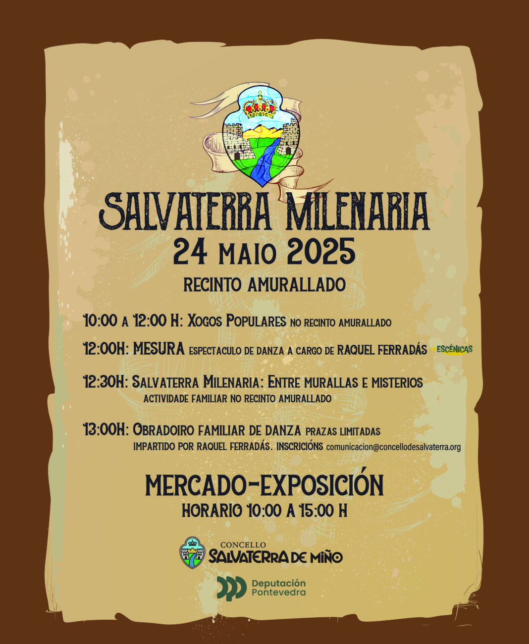 As actividades continúan ás 12:30 horas cun gran xogo de desfrute en familia no que se coñecen e descubren curiosidades e misterios sobre a terra salvaterrense “Salvaterra Milenaria. Entre murallas e misterios”, probas que permiten ós xogadores indagar libremente polo recinto da muralla namentres superan os diferentes retos.