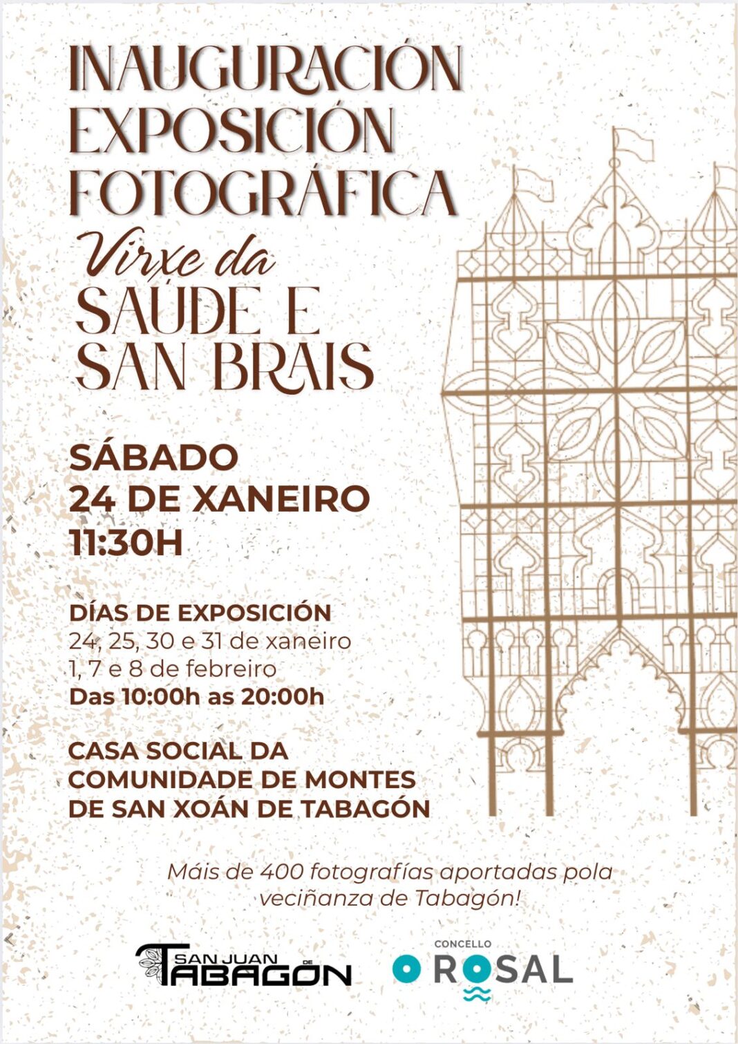 A mostra, que se inaugura este sábado 24 de xaneiro ás 11.30 horas na Casa Social da Comunidade de Montes de San Xoán de Tabagón, reúne máis de 400 fotografías achegadas pola propia veciñanza, converténdose nun auténtico arquivo visual da festa da Saúde e San Brais. As imaxes percorren décadas de historia, desde os anos 40 ata a actualidade, con instantáneas que recollen momentos tan simbólicos como a elaboración e a subida do arco floral, as procesións, os festexos populares ou a vida arredor dunha das celebracións con máis arraigo do Rosal.