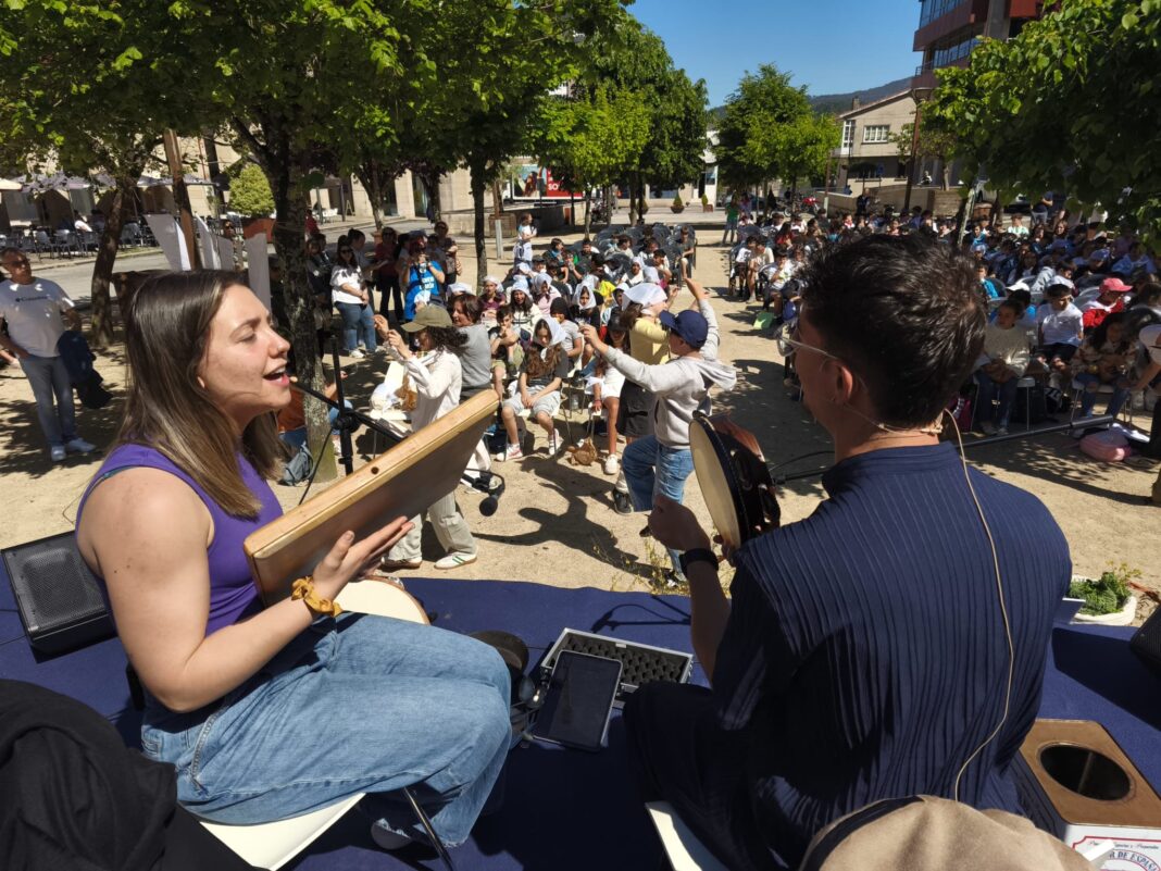 Unha vez que chegaron a Talo Río, tiveron tempo para merendar e, a continuación, desfrutar da actuación de Álvaro R. Carballo e Patri S. Seoane que fixeron un percorrido pola historia dos instrumentos máis tradicionais da nosa cultura galega, onde como non, estivo moi presente o pandeiro, de Soutomaior, de Maruja das Cortellas.