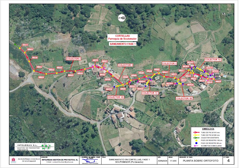 Un proxecto que ten como obxectivo definir e dimensionar as obras necesarias para realizar o saneamento no núcleo rural de Cortellas. Unha iniciativa mediante a cal se prevé a implantación de 5 colectores novos por gravidade compostos por 865 metros de tubaxe e 38 pozos de rexistro.