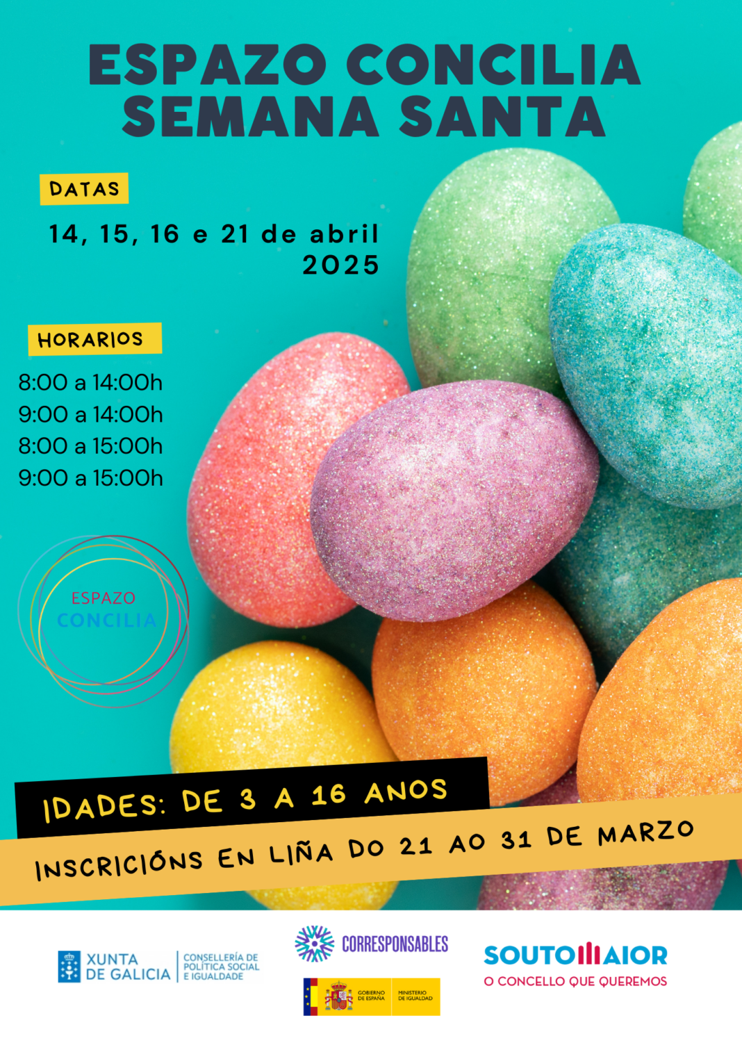 - CIM presentou esta mañá, a través da Concellería de Igualade, o Espazo Concilia para esta Semana Santa e que se levará a cabo os días 14, 15, 16 e 21 de abril.