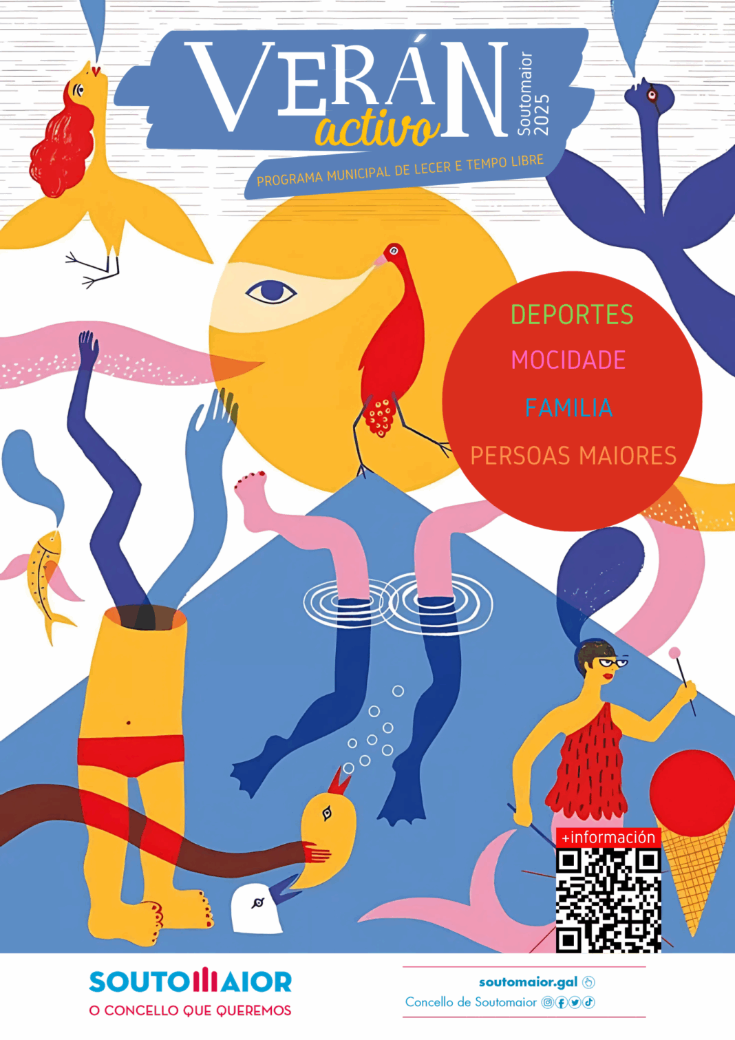 O programa actividades lúdicas, deportivas e de convivencia, durante todo o mes de xullo, que ofrecen oportunidades de socializar, de estar en contacto coa natureza para vivir experiencias cheas de diversión, aprendizaxe e desenvolvemento persoal nun ambiente seguro e enriquecedor. Dirixidas á mocidade, ás familias, as persoas maiores de 60 anos e a toda a cidadanía, que sexan para todas e para todos, inclusivas contando cos apoios necesarios para poder compartir en Soutomaior momentos de lecer compartido.