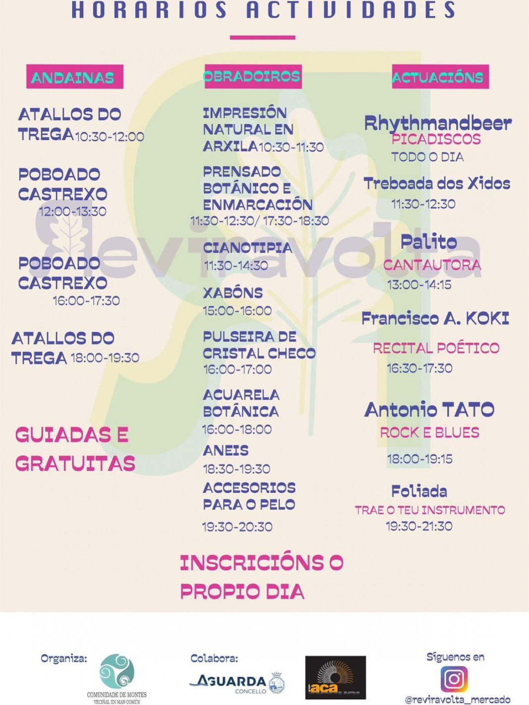 O Reviravolta permitirá coñecer o seu entorno cunhas visitas para descubrir os atallos do Trega e para visitar o poboado castrexo. Ademais ofreceranse obradoiros de cianotipia, xabóns, pulseiras, acuarelas, aneis…