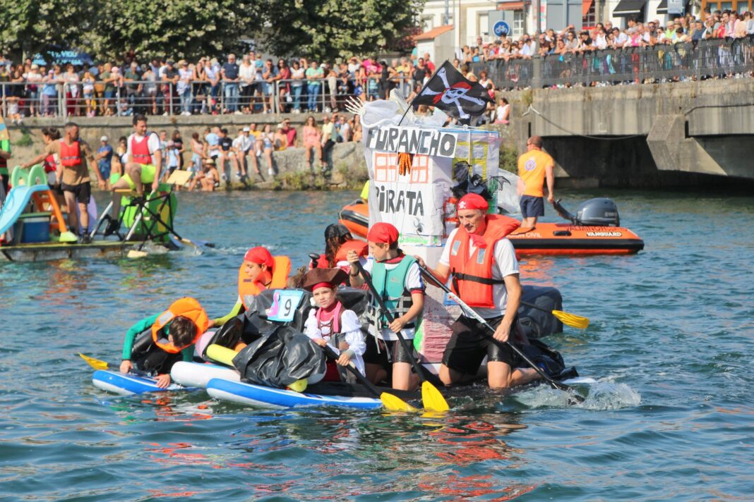 O evento, que cada ano reúne a milleiros de persoas na contorna da ponte romana, apunta a diversión absoluta ao tenor dos nomes dos artefactos flotantes inscritos: ‘Miñocas noxentas’, ‘Ollo que van os de sempre’ (nunca faltaron), ‘Barricada 911’, ‘Kairos’, ‘Vinciarras’, ‘Chuliño’, ‘Foca como poidas’, ‘Yellowsubmarin’, ‘Leira Ecolóxica- Chuzas’ e ‘Pescadores del Puente’.