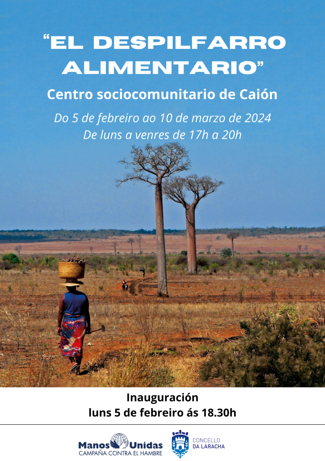 Parte fundamental do labor de Manos Unidas baséase na sensibilización, e unha das moitas iniciativas que levan a cabo é a exposición itinerante “El despilfarro alimentario”, composta por paneis informativos centrados en tres temas fundamentais: o malgasto da comida, a escaseza de auga e a muller como motor que move o corazón do mundo.