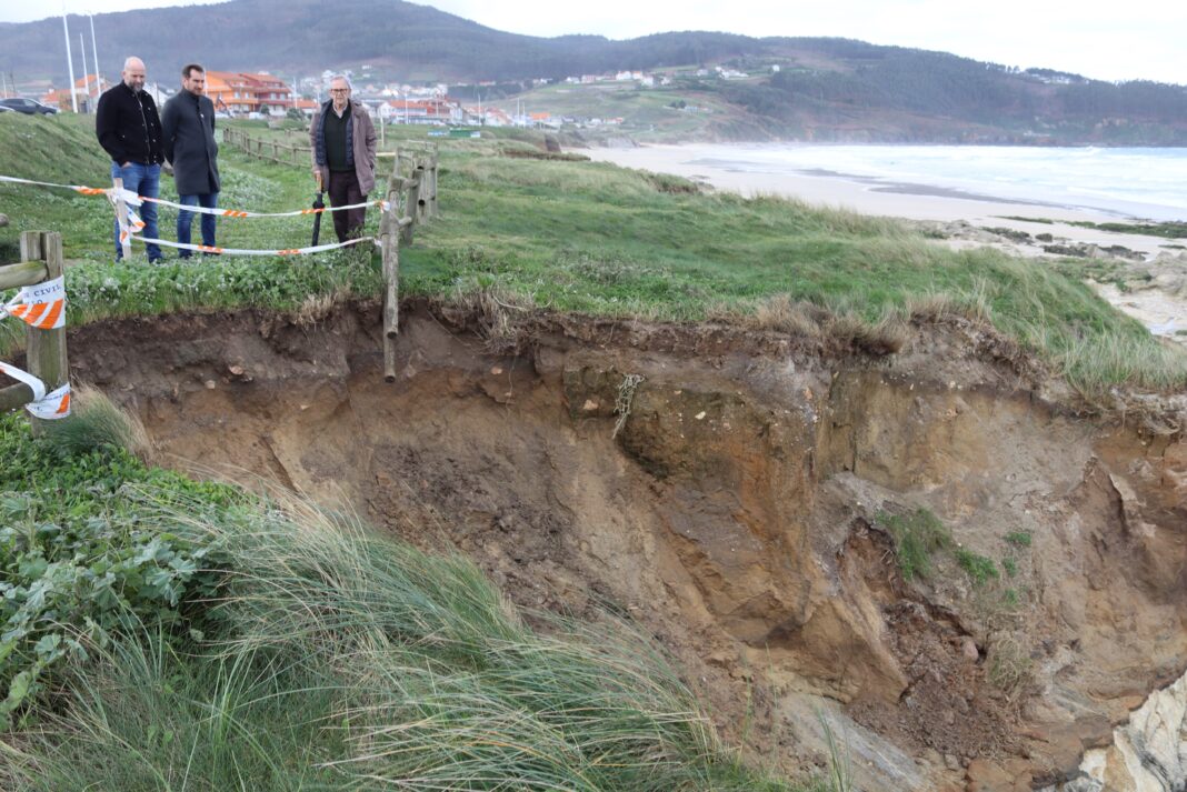 Este mes asistimos a un novo derrubamento, nesta ocasión na zona da explanada. Ata alí achegáronse o alcalde, Evencio Ferrero, e os concelleiros de Medio Ambiente e Praias, Miguel Vales, e Seguridade, Juan Seoane, para ver o alcance dos desprendementos.