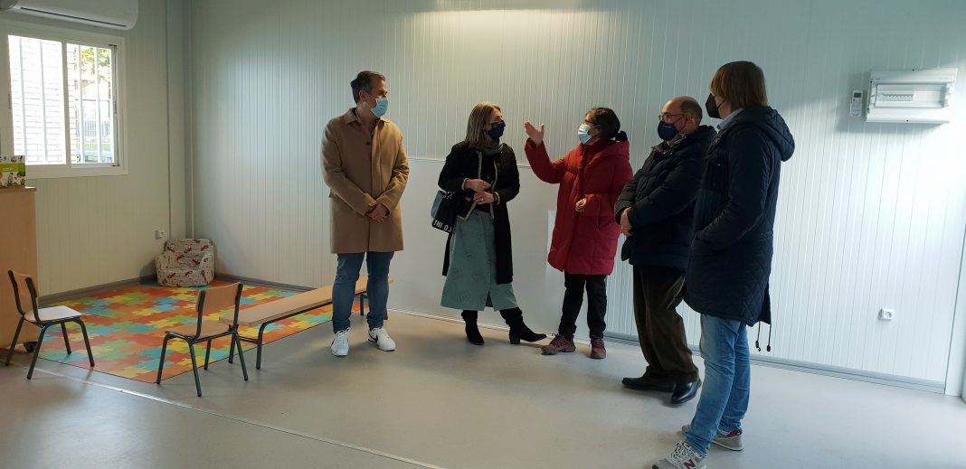 A delegada territorial da Xunta en Pontevedra, Luisa Piñeiro, supervisa esta actuación, na que se investiron 36.414€ e que consistiu nunha estrutura prefabricada de máis de 60m2 para impartir clases de educación infantil