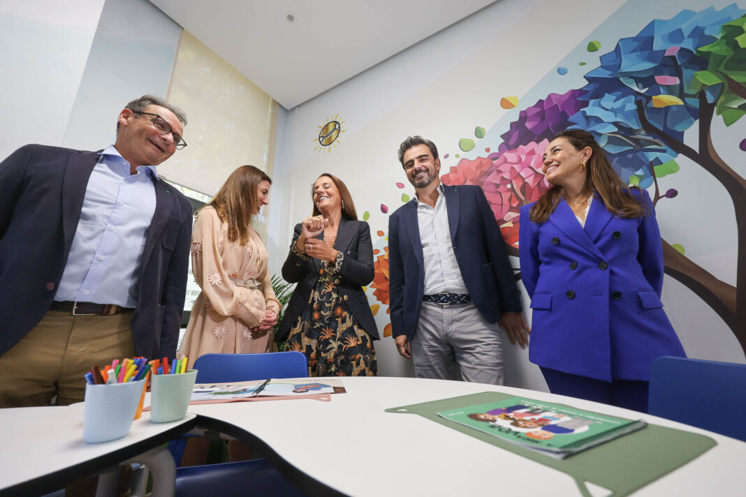 O conselleiro de Presidencia, Xustiza e Deportes, Diego Calvo, acompañado polo director xeral de Xustiza, José Tronchoni, a presidenta da Fundación Andrea, Charo Barca, e a decana dos xulgados de Santiago de Compostela, Sandra María Iglesias Barral, visitou hoxe no edificio xudicial de Santiago de Compostela a sala de espera para persoas menores na que colaborou a Fundación Andrea, á que a Xunta agradece a dotación. O obxectivo de iniciativas coma estas é crear espazos seguros e amables, con rotulación e circuítos personalizados e achegar información e recursos específicos en forma de contos adaptados á idade e ás características das vítimas.