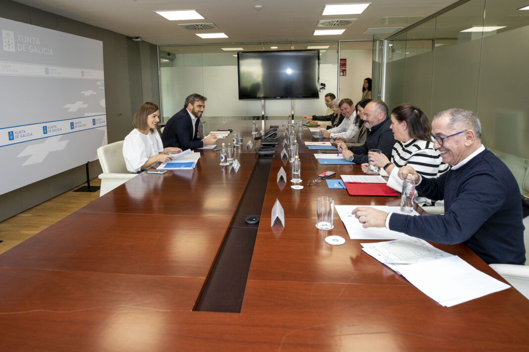O conselleiro de Presidencia, Xustiza e Deportes, Diego Calvo, acompañado da directora xeral de Mobilidade, Judit Fontela, reuniuse hoxe con representantes dos concellos de Bergondo, Cambre, Carral, Culleredo, Oleiros e Sada para abordar as demandas de liñas e frecuencias de autobús nestes concellos e o compromiso sobre a prórroga do convenio da Área de Transporte Metropolitano da Coruña.