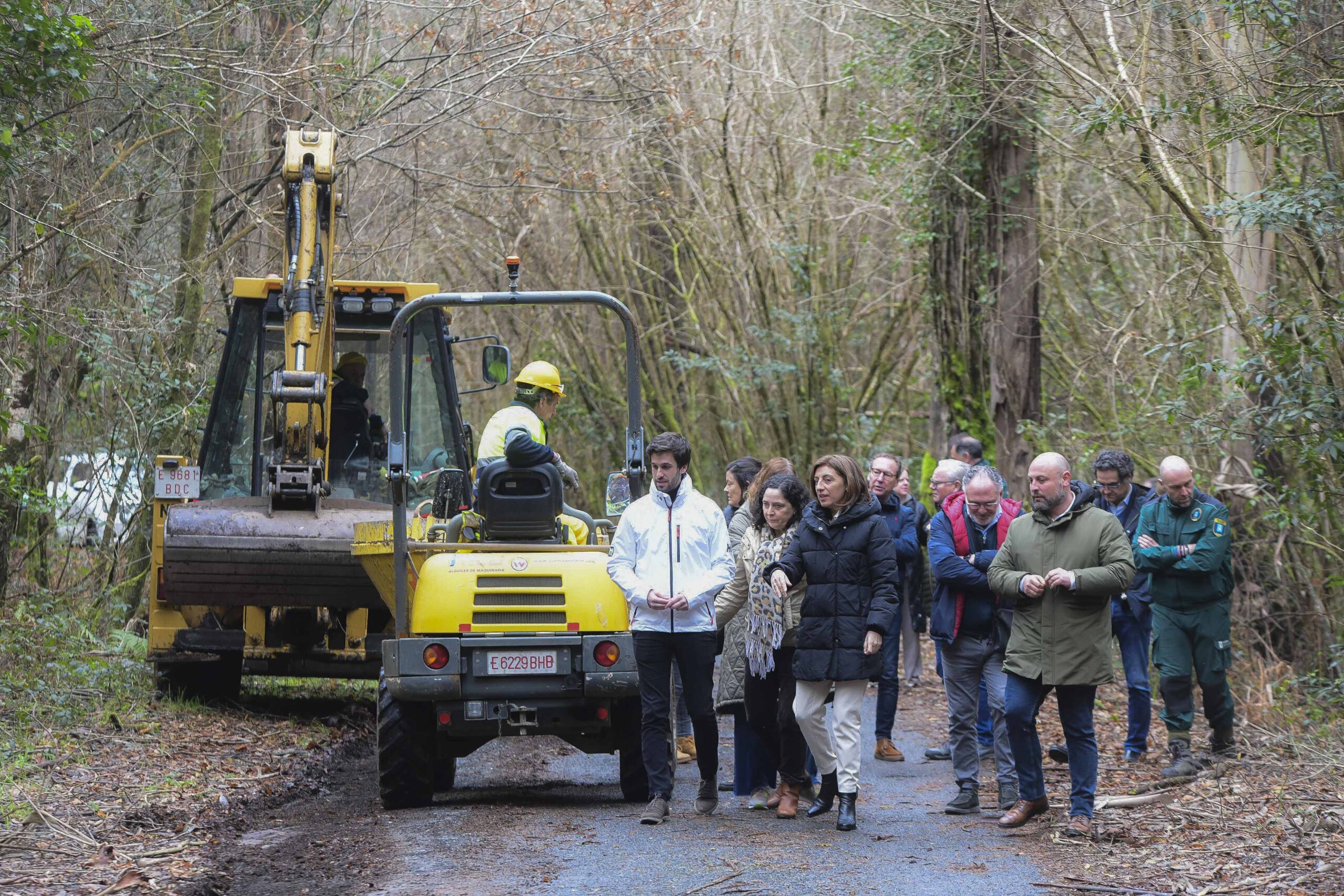 Ángeles Vázquez, que estivo acompañada pola directora xeral de Patrimonio Natural, Belén do Campo, tamén informou dos traballos de urxencia que está a facer a Xunta na estrada que une o centro de interpretación do parque natural co mosteiro de Caaveiro. Neste sentido, explicou que se están a facer traballos de limpeza de cunetas, desaugadoiros e de retirada de restos existentes na contorna -pólas de árbores e rochas de grandes dimensións- e que a continuación se procederá a facer novos desaugadoiros así como ao arranxo das fochas existentes no firme.