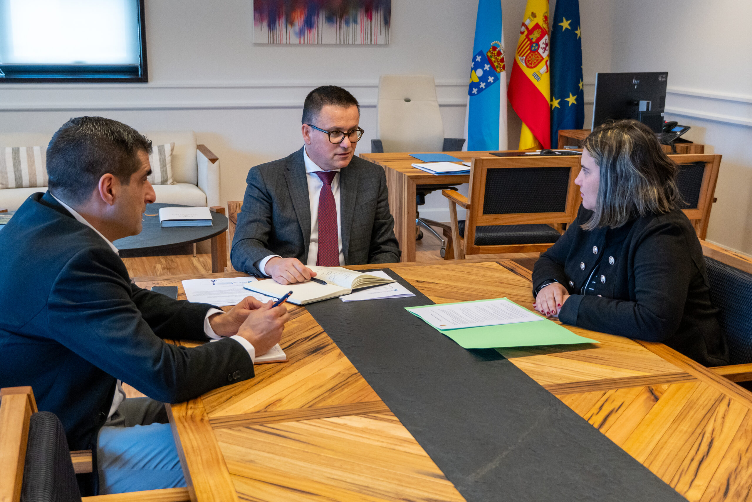 O conselleiro de Emprego, Comercio e Emigración, José González, acompañado polo director xeral de Comercio e Consumo, Gabriel Alén, reuniuse hoxe coa alcaldesa de Rairiz de Veiga, Asunción Morgade, para analizar posibles vías de colaboración en materia de dinamización do comercio local a prol de garantir o servizo desta actividade no municipio. Nesta liña, na xuntanza púxéronse de relevo os apoios enmarcados no Plan estratéxico do comercio de Galicia 2025-2030, unha folla de ruta elaborada xunto cos axentes implicados para fortalecer o comercio de proximidade, un sector clave para xerar emprego e dinamizar o territorio.