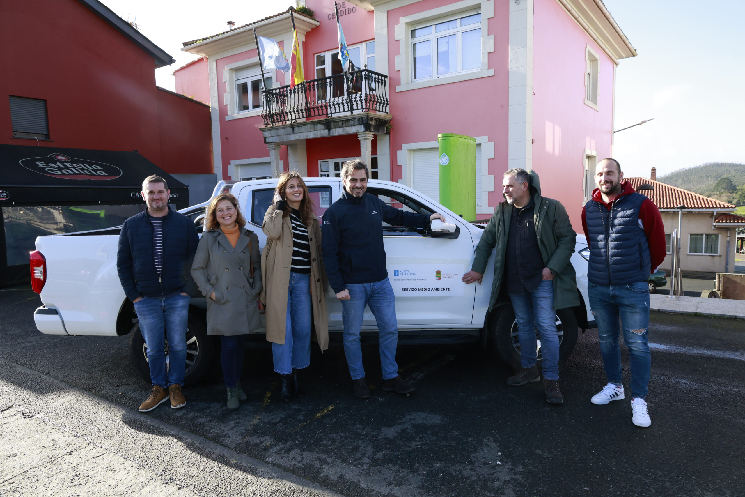 O conselleiro de Presidencia, Xustiza e Deportes, Diego Calvo, acompañado pola directora xeral de Administración Local, Natalia Prieto, visitou hoxe Cerdido para comprobar a dotación para labores de mantemento da contorna e de protección do medio natural adquirida polo Concello no marco dun convenio de colaboración co Goberno galego. Trátase dun pick-up eléctrico cofinanciado pola Xunta con preto de 37.000 euros.