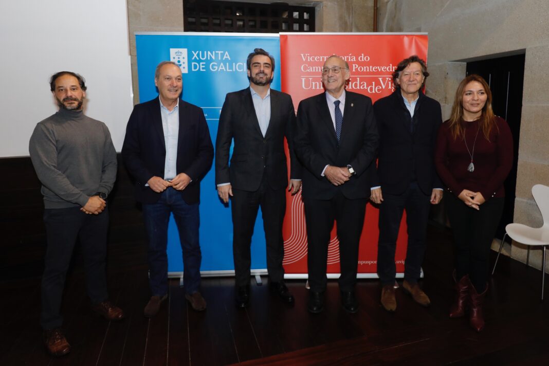 O conselleiro de Presidencia, Xustiza e Deportes, Diego Calvo, acompañado do secretario xeral para o Deporte, José Ramón Lete Lasa, asinou hoxe o convenio entre a Xunta e a Universidade de Vigo, representada polo seu reitor, Manuel Reigosa, para o desenvolvemento de actuacións que redunden en beneficio do deporte en Galicia e da comunidade universitaria galega durante os vindeiros catro anos. O acto contou tamén coa presenza do delegado territorial da Xunta en Pontevedra, Agustín Reguera.
