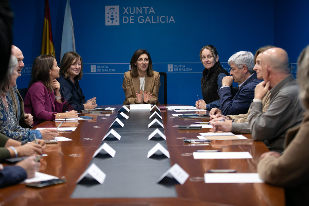 A conselleira de Medio Ambiente e Cambio Climático, Ángeles Vázquez, mantivo hoxe un encontro con representantes da Asociación para a defensa do patrimonio cultural galego (Apatrigal) e dos grupos de acción local do sector pesqueiro (GALP) da comunidade, aos que trasladou a transcendencia de que se impliquen na posta en marcha deste organismo, un instrumento previsto na Lei de ordenación e xestión integrada do litoral de Galicia (Loxilga).