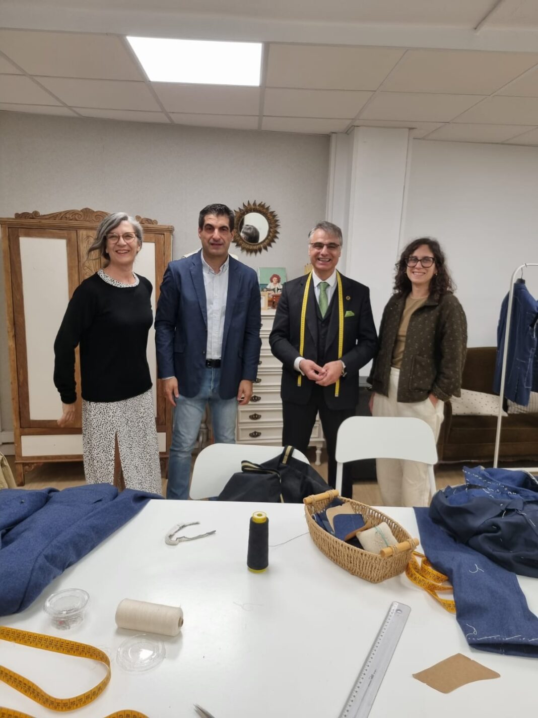O director xeral de Comercio e Consumo, Gabriel Alén, e a xerente da Fundación Artesanía de Galicia, Elena Fabeiro, achegáronse esta mañá a Santiago de Compostela para asistir á última xornada do curso Xastrería artesanal. Execución dunha chaqueta de traxe, a actividade máis longa incluída no programa formativo Aprender da tradición. Oficios e técnicas e iniciada en novembro pasado.
