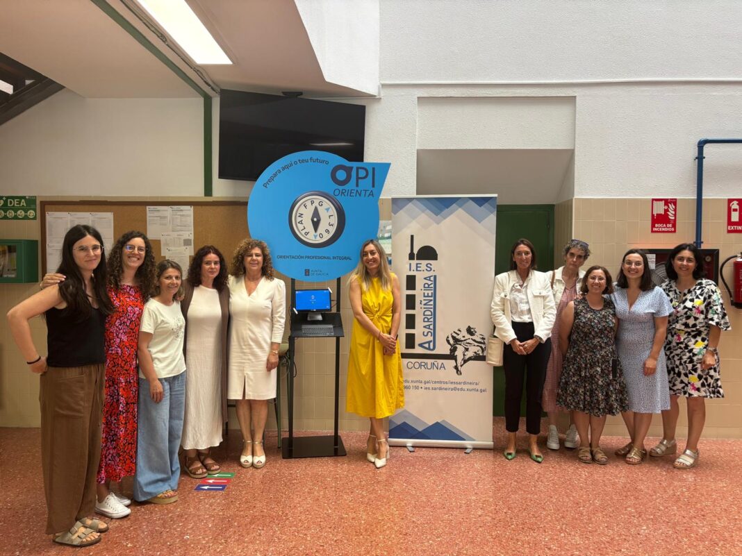 No transcurso da súa visita ao IES A Sardiñeira, a directora xeral presentou a ferramenta de orientación profesional virtual OPI Orienta, unha innovadora aplicación tecnolóxica baseada na intelixencia artificial que ofrece orientación académica e profesional personalizada aos alumnos. Segundo explicou, os estudantes poden consultar cun holograma adestrado con IA as posibilidades da FP. “Está deseñada cunha linguaxe adaptada a cada etapa para guiar ao alumnado na configuración do seu itinerario académico e profesional”, sinalou.
