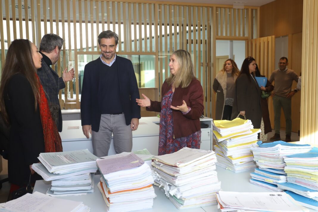 O conselleiro de Presidencia, Xustiza e Deportes, Diego Calvo, acompañado do director xeral de Xustiza, José Tronchoni, comprobou hoxe o inicio do traslado ao novo edificio xudicial da Estrada do persoal que traballaba nos antigos xulgados de Primeira Instancia e Instrución número 1 e 2, así como do Rexistro Civil. En total, son 18 profesionais, incluíndo dous xuíces, dous letrados da Administración de Xustiza e 11 funcionarios -xestores, tramitadores e auxilios-, aos que se suman tres axentes que se encargan da vixilancia e da seguridade.