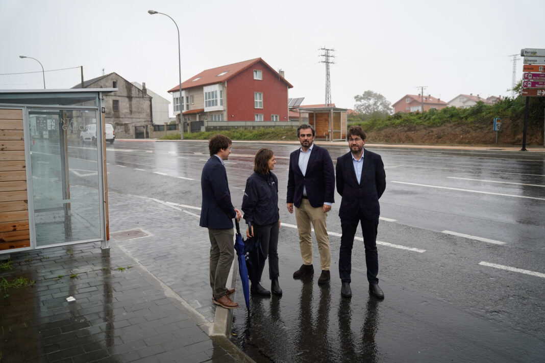 O conselleiro de Presidencia, Xustiza e Deportes, Diego Calvo, xunto co director da Axencia Galega de Infraestruturas, Francisco Menéndez, e a directora xeral de Mobilidade, Judit Fontela, visitou hoxe en Arteixo as paradas de autobús de Lañas, onde fixo balance do Plan de mellora da seguridade accesibilidade de paradas de autobús. A través desta iniciativa, dotada con 35,5 millóns de euros, vaise actuar máis dun milleiro de puntos de espera en toda Galicia. Deste total, preto de 300 están en execución ou rematadas e máis de 700 en tramitación ou proxecto.