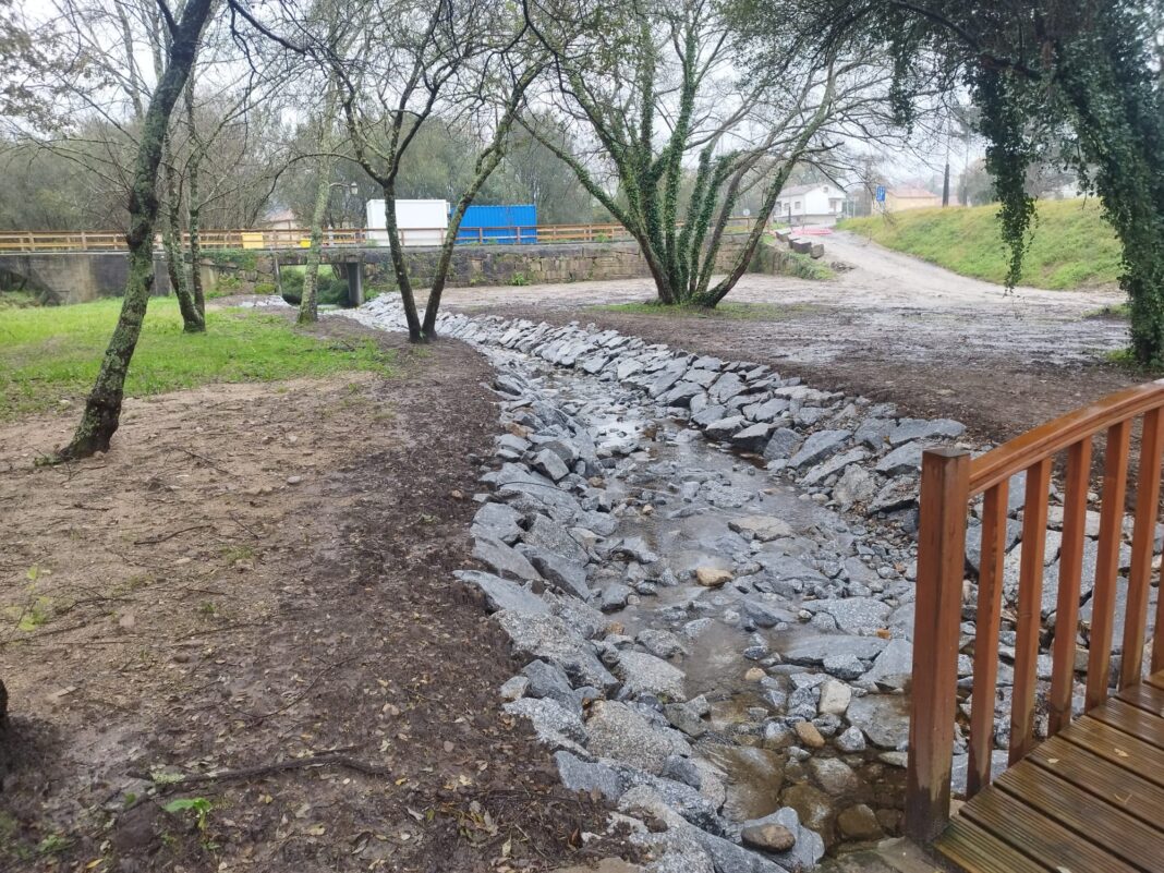 A obra tamén levou aparellado o acondicionamento da canle dun rego afluente do río Valga que se atopa na zona e a renovación da pasarela peonil de madeira que o cruza. O obxectivo destas actuacións é reducir tanto as erosións como os atoamentos da canle e facilitar así a circulación fluída das augas.